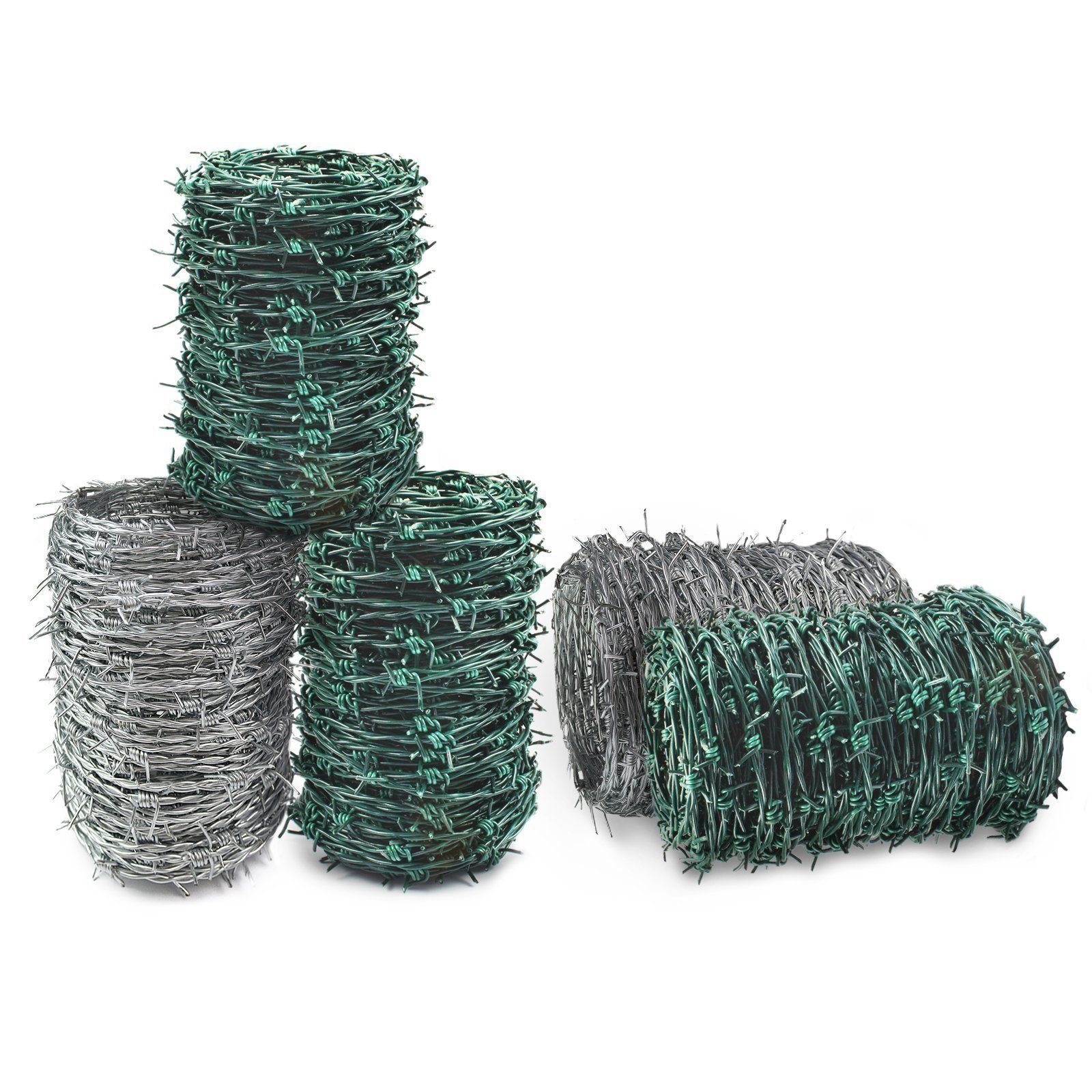 Verzinkter oder kunststoffbeschichteter Stacheldraht für viele Verwendungszwecke geeignet. Wählen Sie ganz einfach zwischen einer 16 Meter (gilt nur für verzinkte Варианты) - oder 50-Meter-Rolle (gilt für beide Вариантыn). Der Stachelabstand beträgt jeweils 10 cm bei einer Drahtstärke von 1,6 mm (verzinkter Stacheldraht mit 16 m Длина), 1,7 mm (verzinkter Stacheldraht mit 50 m Длина) bzw. 1,7 / 2,7 mm (mit PVC ummantelter Stacheldraht).