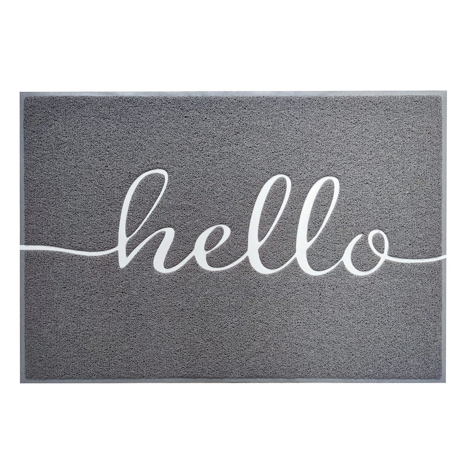 Die Spaghettimatte ist in stilvollem Grau und Schwarz erhältlich, wahlweise mit den Aufdrucken "Hello" oder "Welcome" für eine freundliche Begrüßung oder schlicht ohne Aufdruck. Ihr modernes Design fügt sich nahtlos in jedes Zuhause ein, während die effektiven PVC-Schlingen Schmutz und Feuchtigkeit zuverlässig von den Schuhen entfernen.