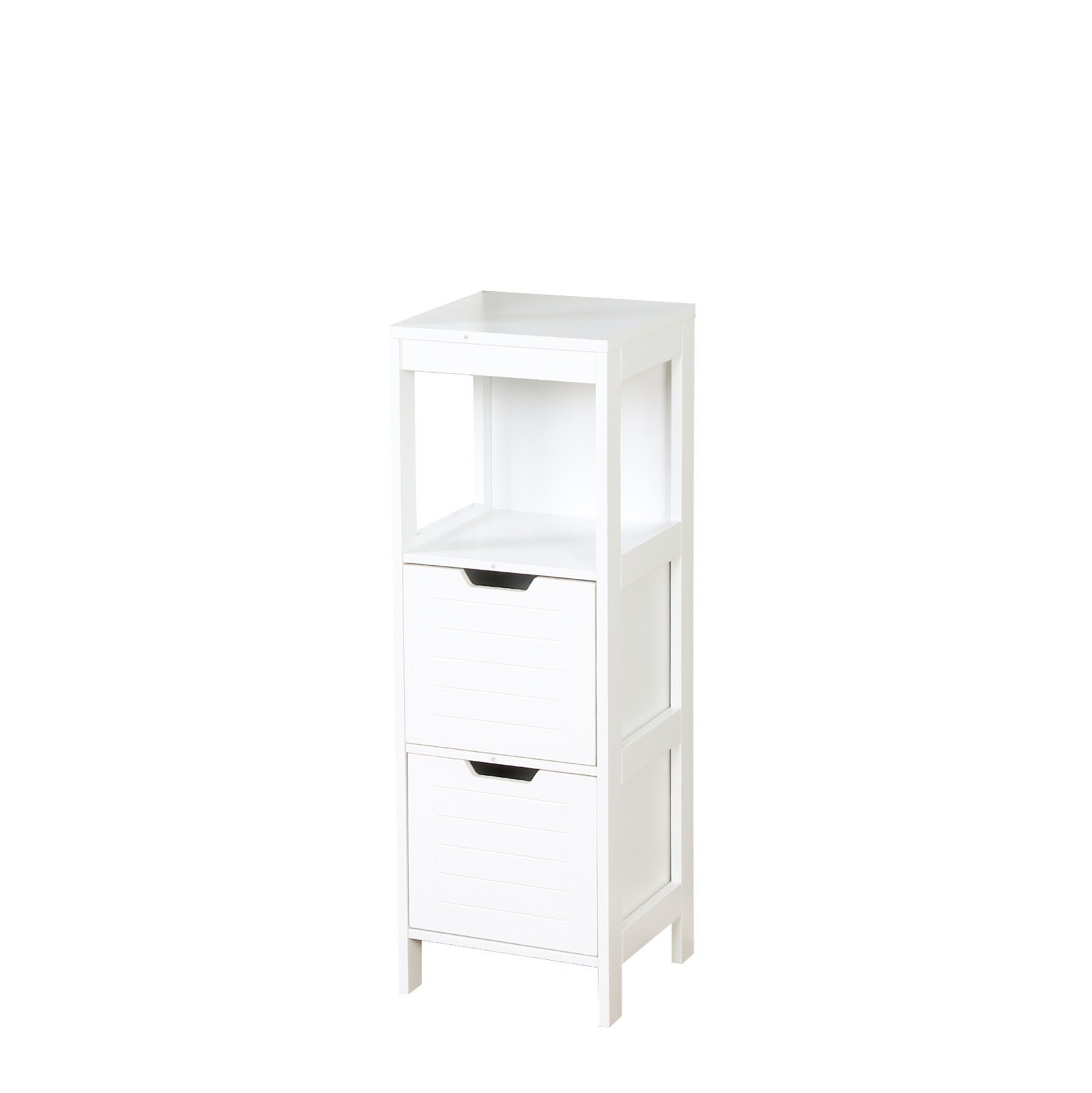 Der Badezimmerschrank Vermont kombiniert stilvolles Design mit praktischer Funktionalität und passt perfekt in kleinere Badezimmer. Gefertigt aus hochwertigem, feuchtigkeitsbeständigem MDF in klassischem Weiß, bietet er eine robuste und langlebige Lösung für die Aufbewahrung, die auch in feuchten Badezimmerumgebungen ihre Form und Qualität bewahrt. Mit kompakten Maßen von 30 cm Tiefe, 30 cm Breite und 89 cm Höhe fügt sich der Schrank mühelos in enge Ecken ein und nutzt den verfügbaren Raum optimal aus, ohne den Raum zu überladen.