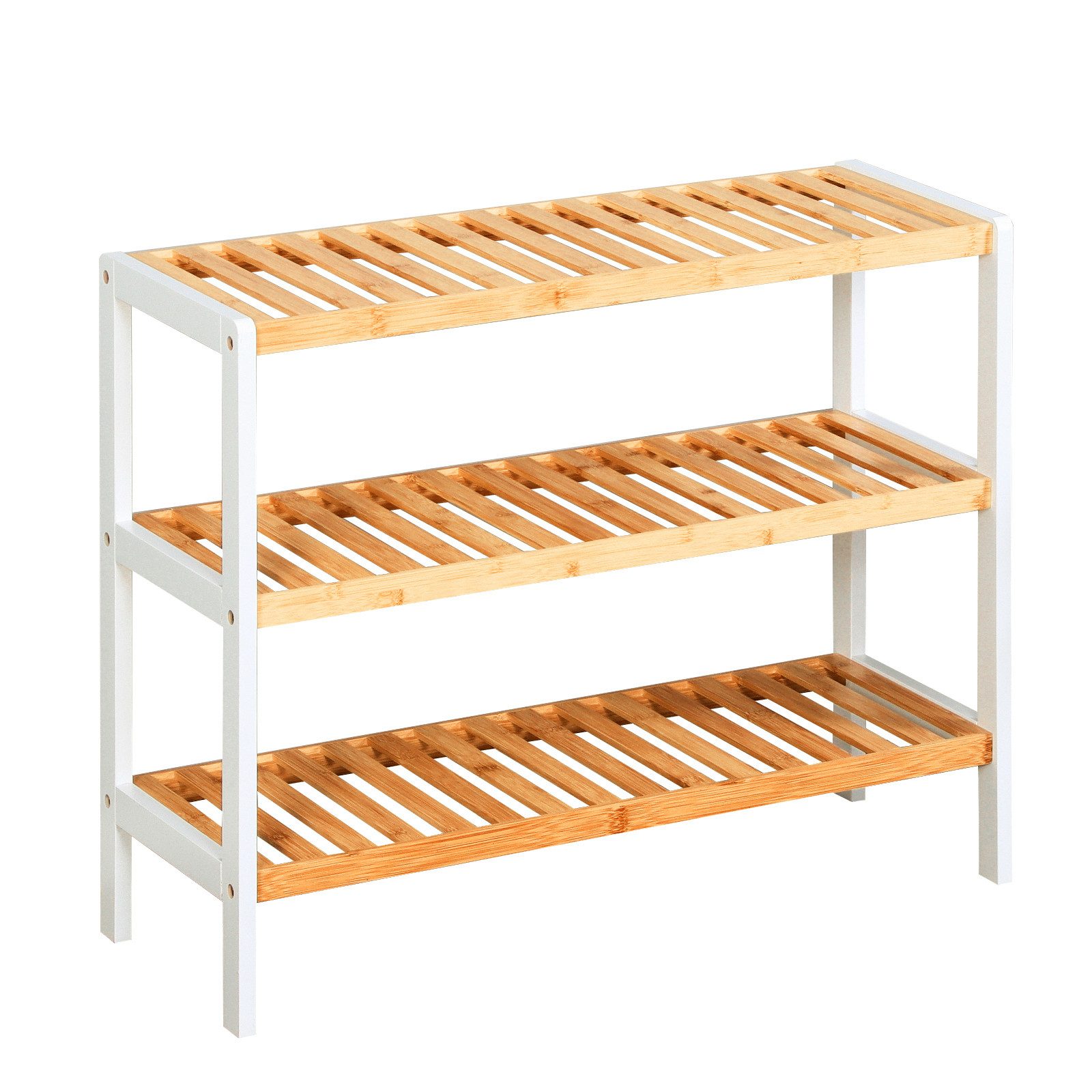 Erleben Sie mit dem Bambus-Schuhregal "Timber" eine stilvolle und praktische Lösung zur Schuhaufbewahrung, die Funktionalität und Eleganz in einem kompakten Design vereint!