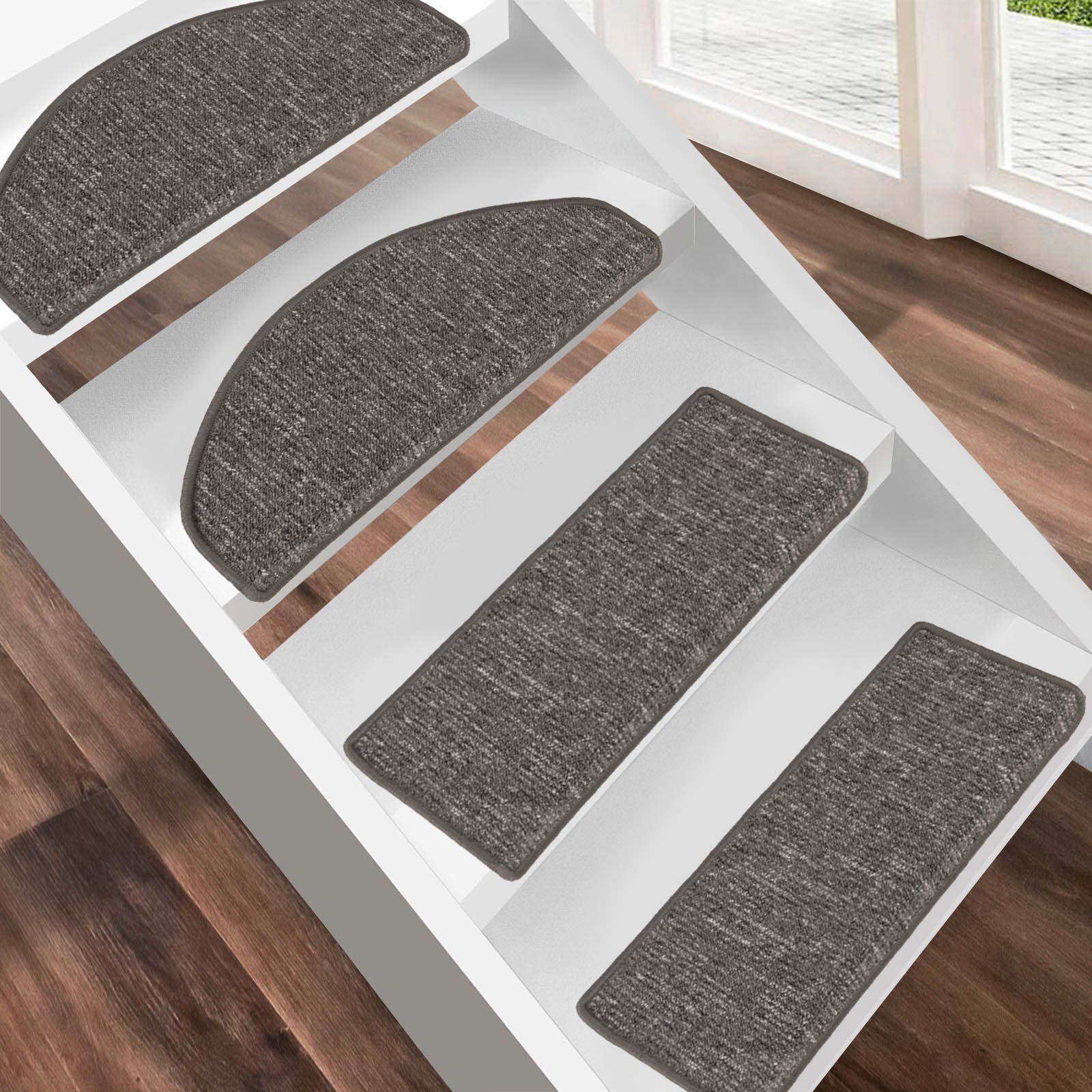 Unsere Stufenmatten „Alfa“ machen es Ihnen mehr als leicht. Sie stehen als optimale Lösung für Ihre Treppenstufen zur Verfügung. Nach Kauf und Lieferung müssen sie sich nicht mit einer unnötig langen Montagezeit herumschlagen. Dank robuster Winkelschiene sowie Klebestreifen gelingt die Befestigung im Handumdrehen. So wie die Auswahl der aus robustem Polypropylen gefertigten Matten alltäglichen Einflüssen problemlos standhält, so schützen die umkettelten Ränder vor allmählichem Ausfransen.