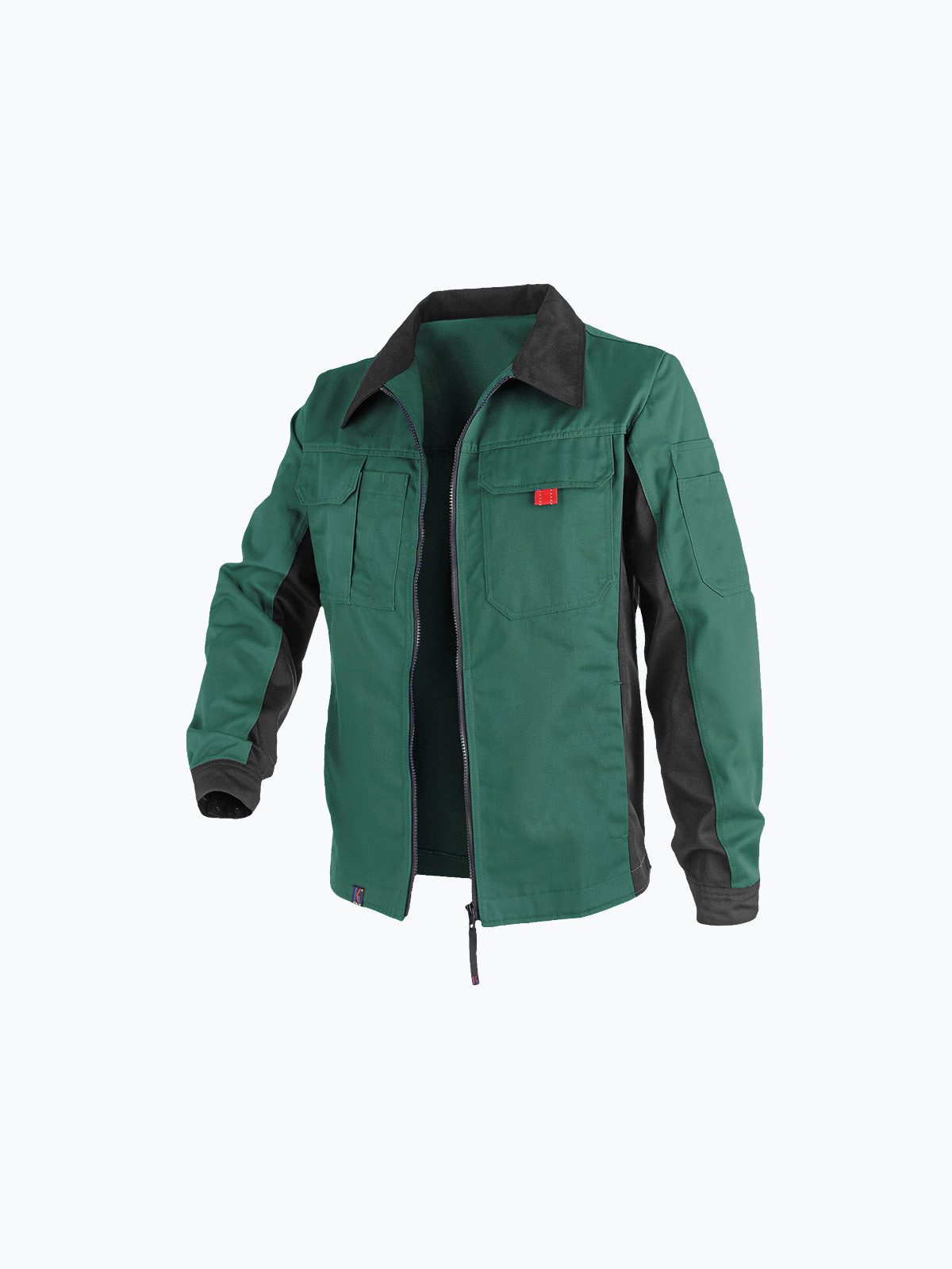 Robuste Arbeitsjacke mit Rigeln gesicherten Belastungspunkte.Viele praktische Taschen bieten viel stauraum für Werkzeug