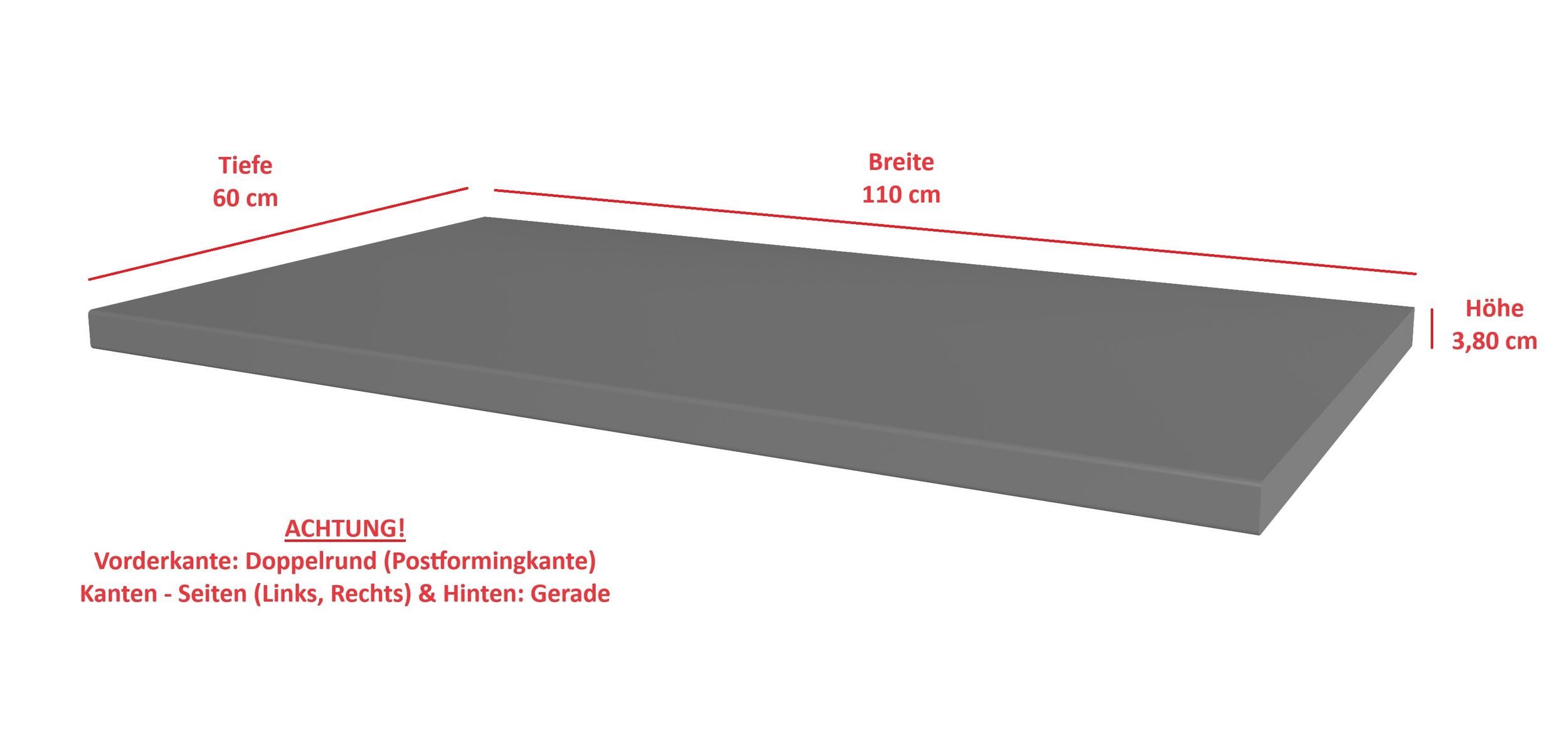 Wir bieten hier zu unseren Küchenprogrammen Nessa, Scandi, Old Style, Ava-AR, Luna eine Küchen Arbeitsplatte 110 cm in Anthrazit matt an.
