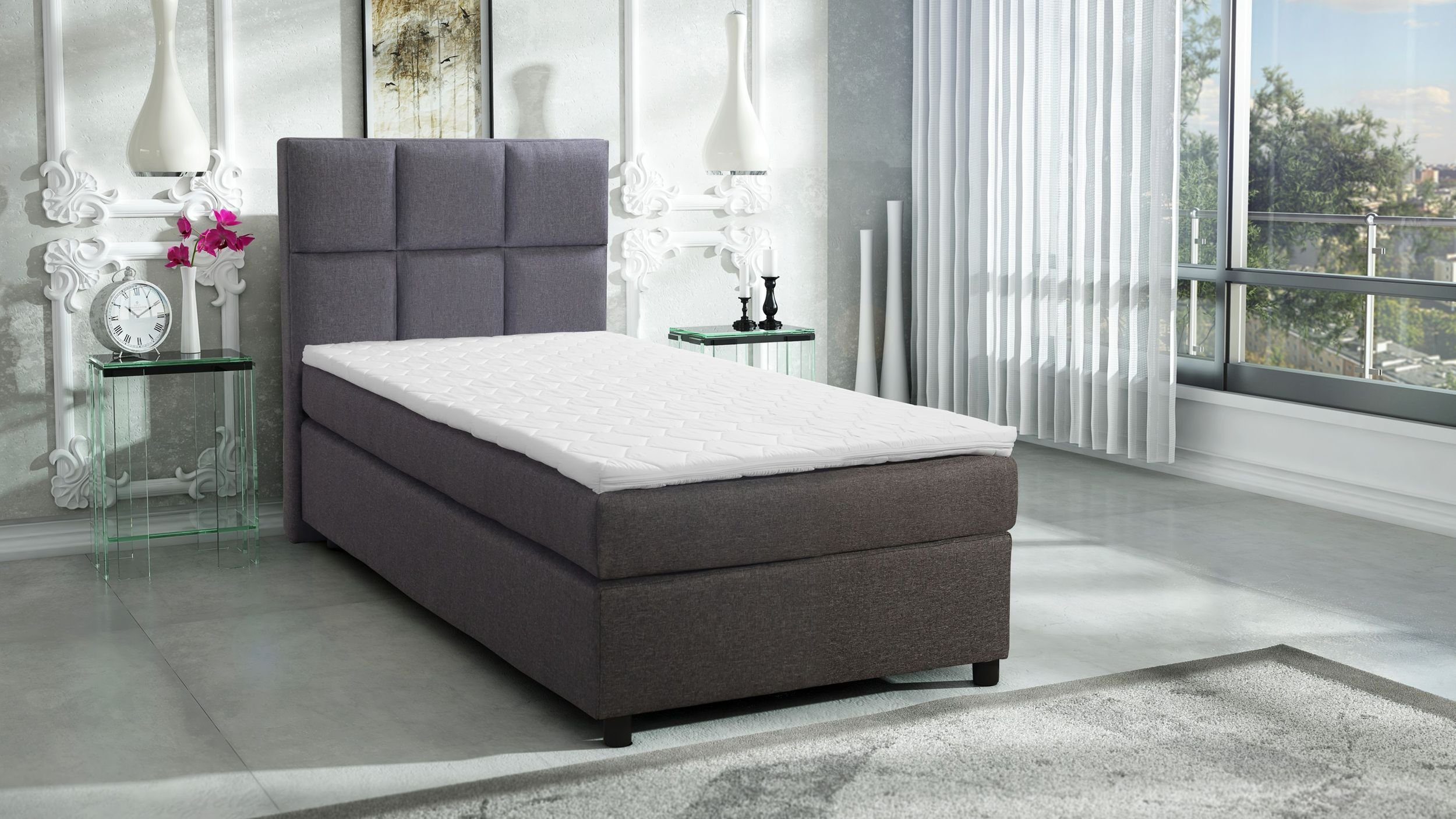 Das behagliche Boxspringbett PAXOS I Tablet 90x200 in raffiniertem Grau verschönert jedes heimische Schlafzimmer!