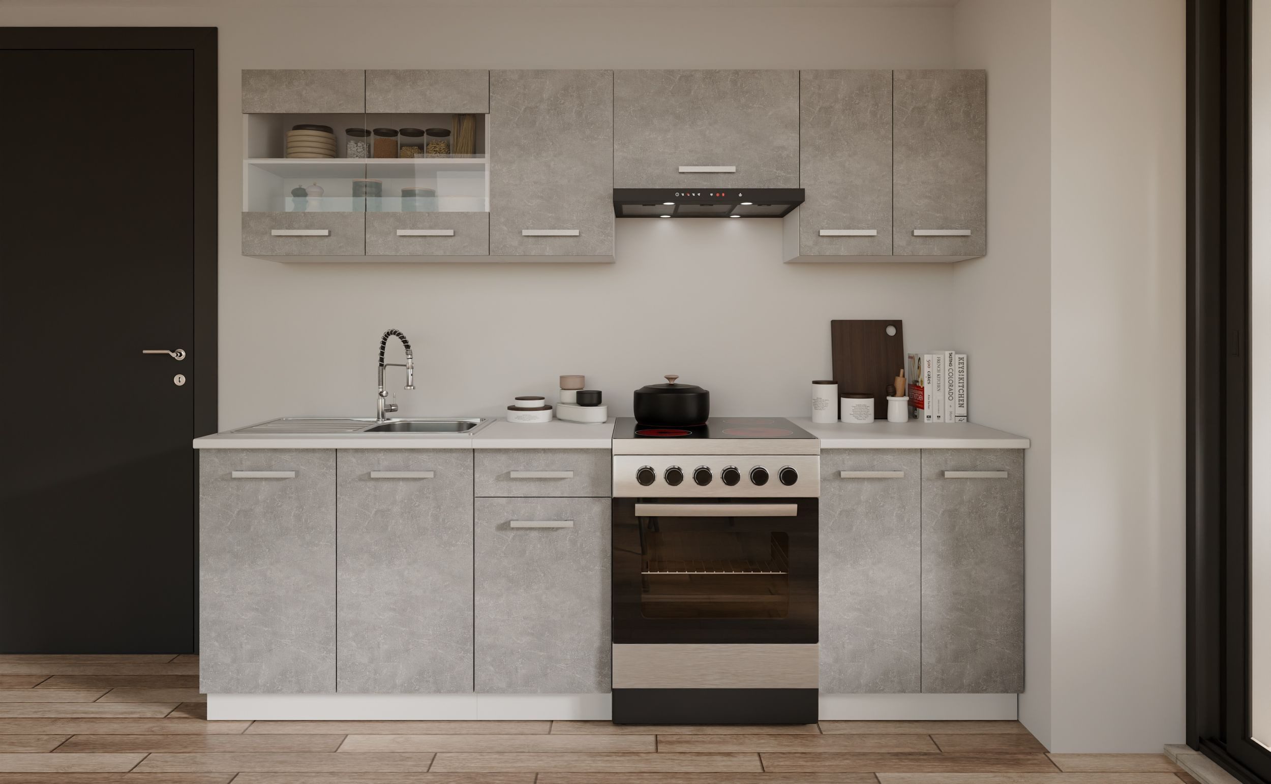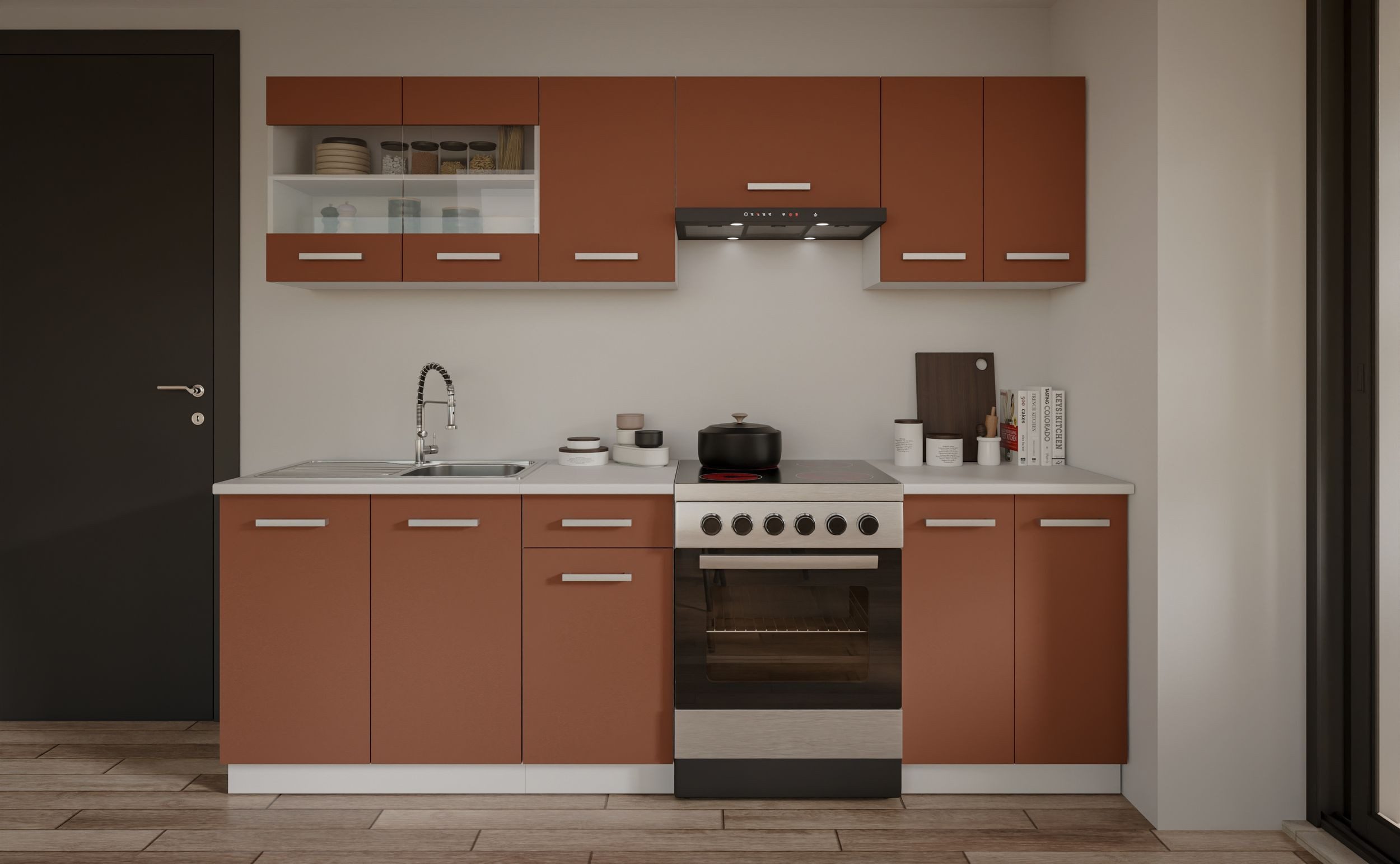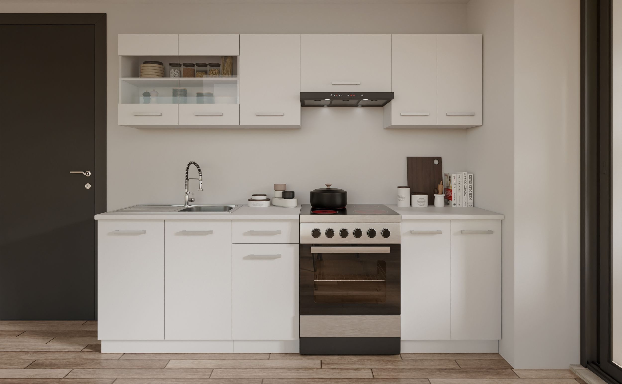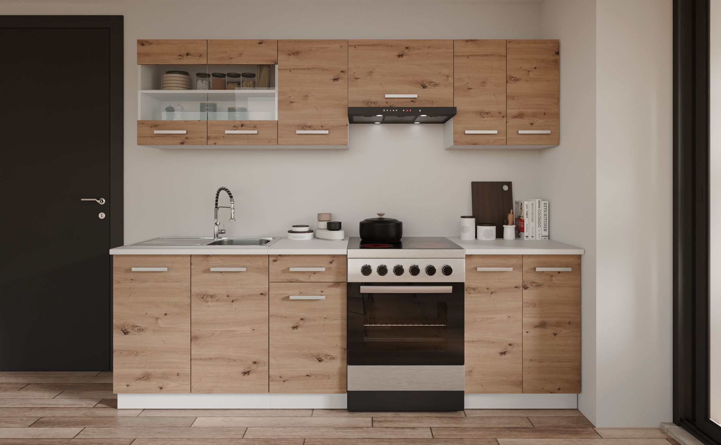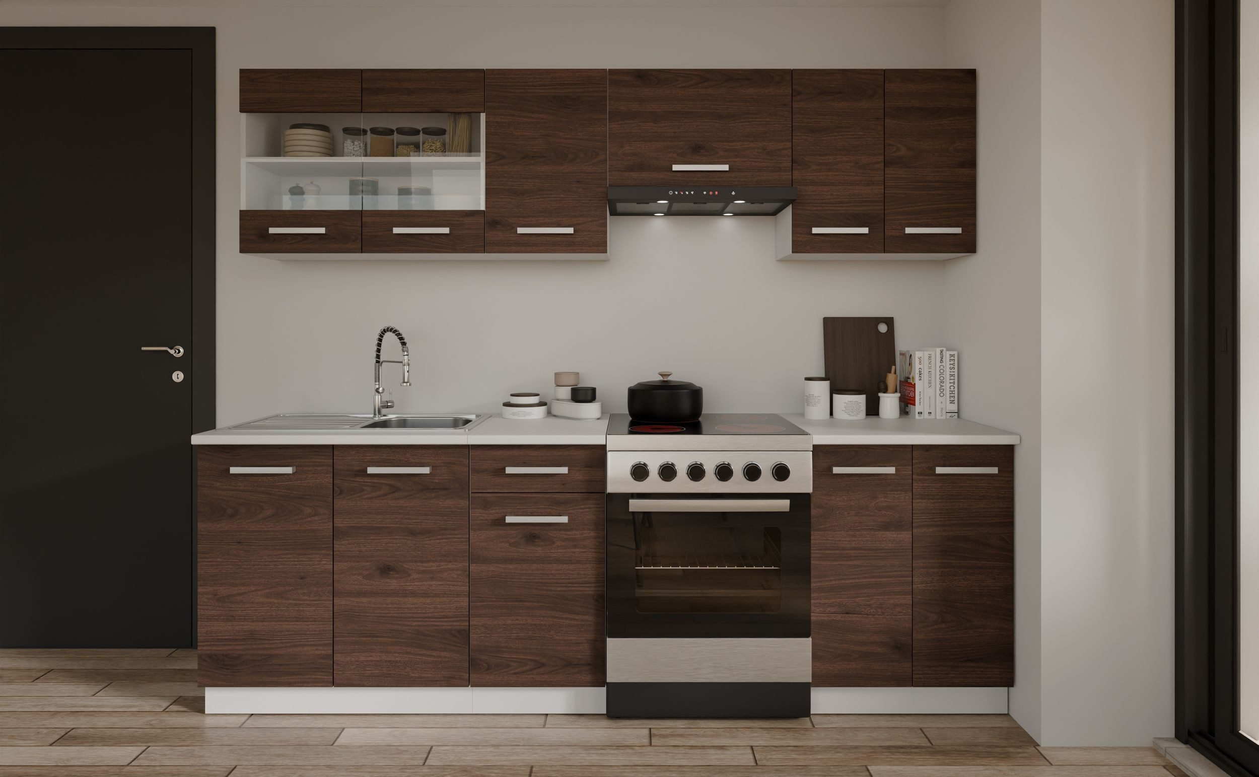 Diese praktische Küchenzeile ROBBY 240 cm ist ein wahres Kombinations-/ und Stauraumwunder, in dem alle Ihre Küchenutensilien Platz finden. Das edle Design und die gute Verarbeitung tun ein Übriges, um aus Ihrer Küche eine Wohlfühloase zu machen.