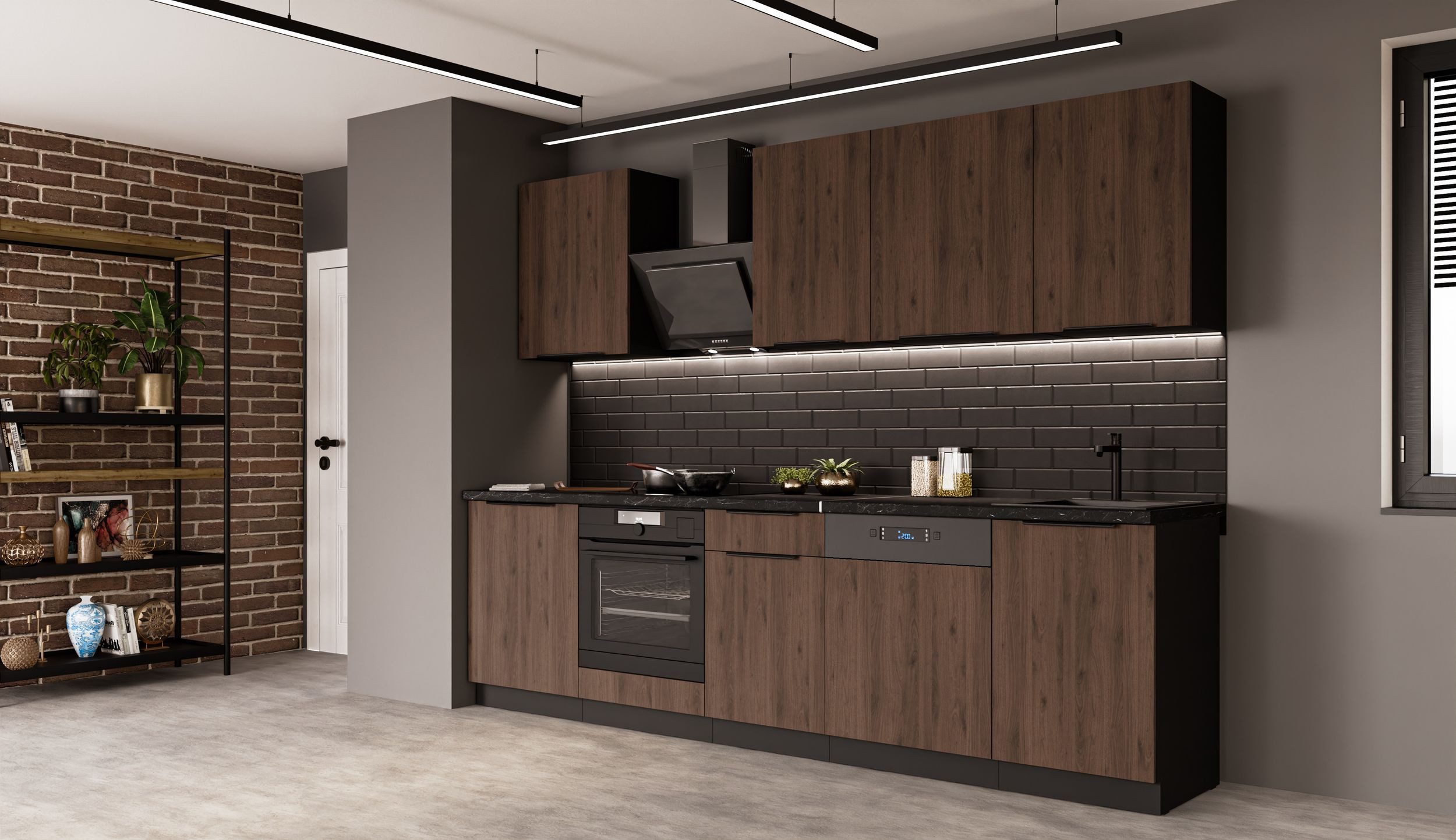 Die vielseitige Küche MONZA im modernen Mix aus Okapi Nussbaum und schwarz matt Design ist ein wahres Kombinations- und Stauraumwunder, in dem alle ihre Küchenutensilien Platz finden. Das edle Design und die gute Verarbeitung tun ein Übriges, um aus ihrer Küche eine Wohlfühloase zu machen. Все Türscharniere und Schubladen sind mit hochwertigen Dämpfern, für leises Спрятать der Fronten ausgestattet.