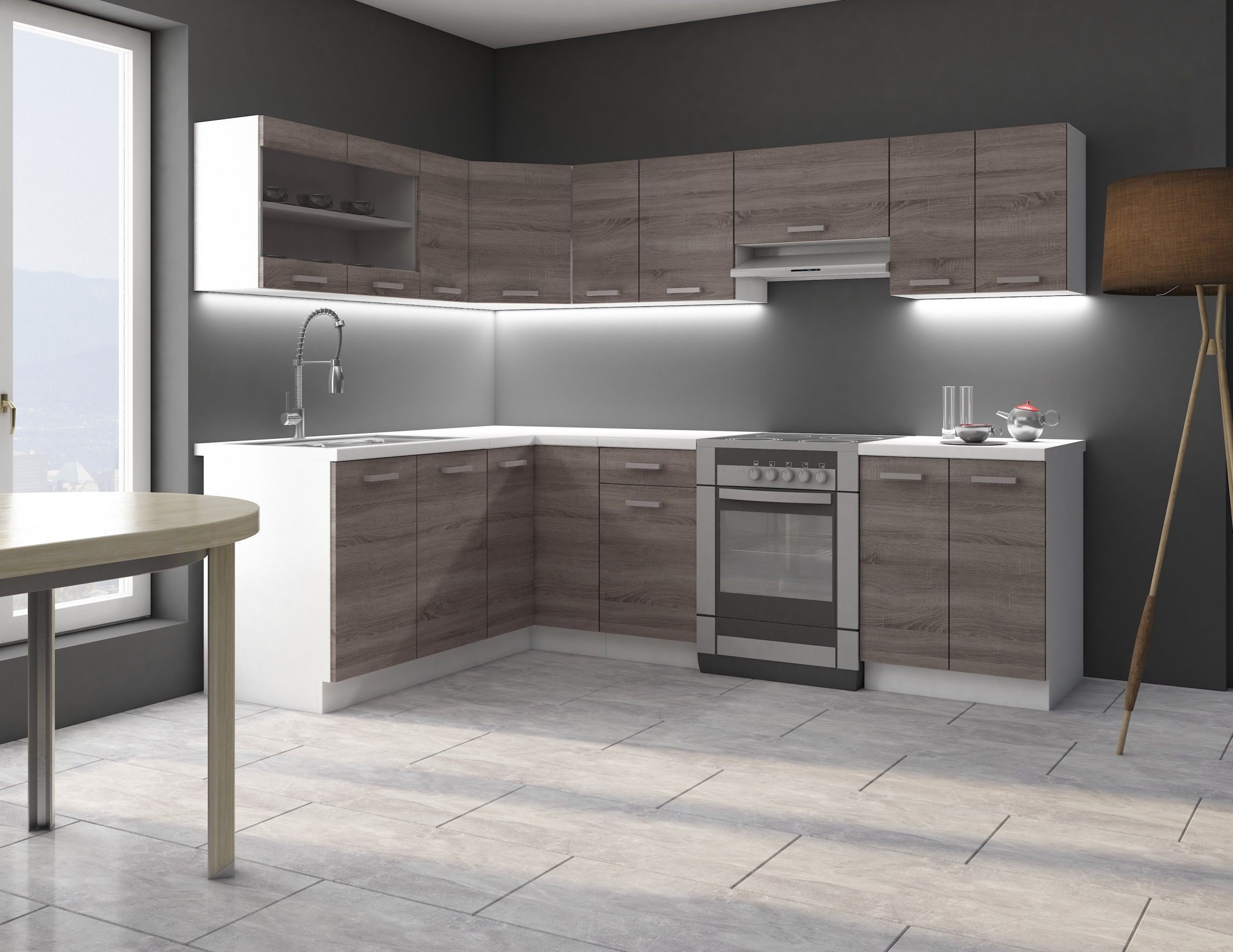 Wichtig! Die Arbeitsplatten werden geteilt geliefert (1x 80 cm + 1x 60 cm + 1x 40 cm + 1x 89 cm + 1x 29 cm), und ohne Ausschnitt für Spüle oder Kochfeld