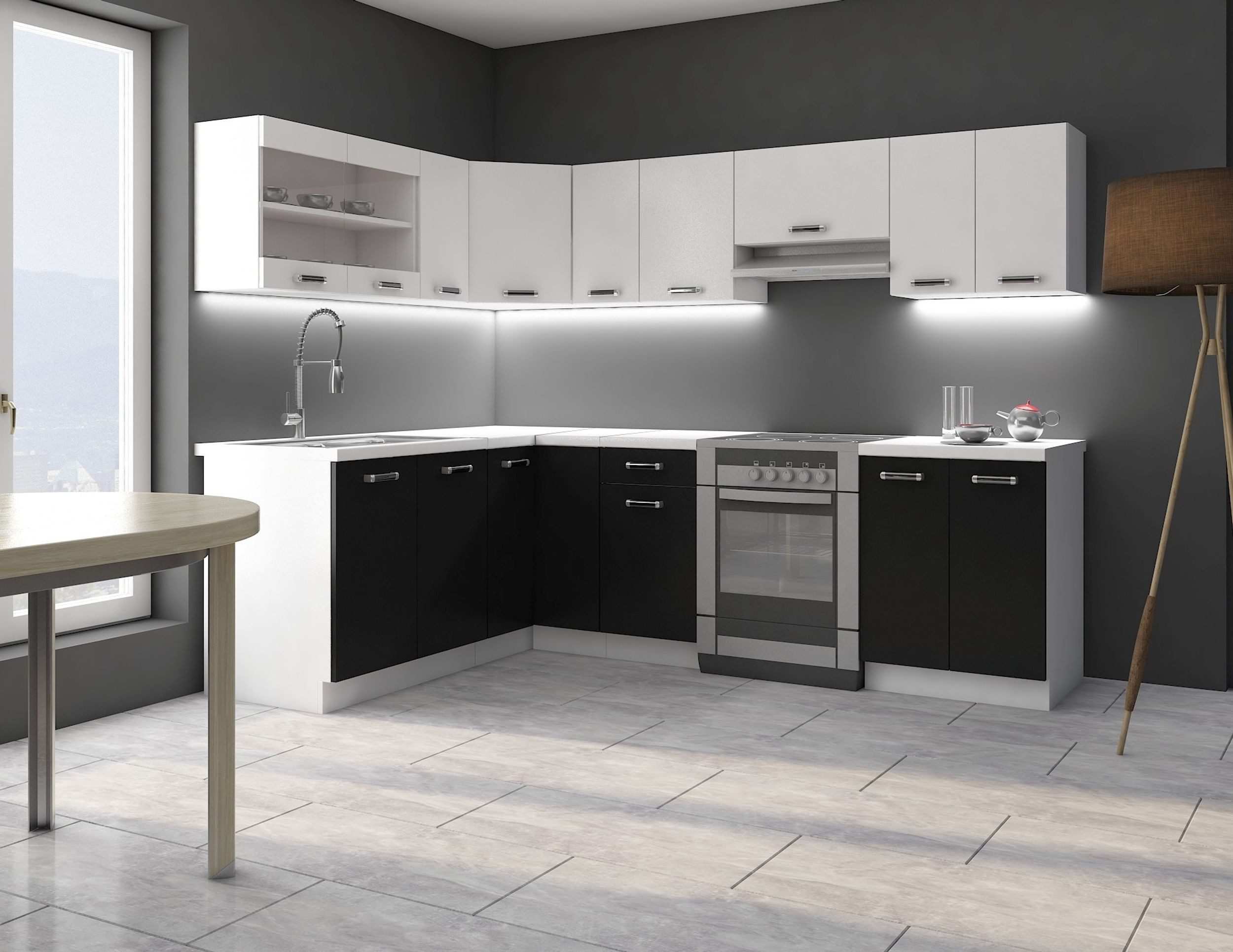 Mit der funktionalen Küche Omega können Sie sich jeden Tag aufs Kochen freuen und Ihrer Kreativität freien Lauf lassen. Diese Eckküche setzt sich aus 11 frei kombinierbaren Schrankelementen zusammen.