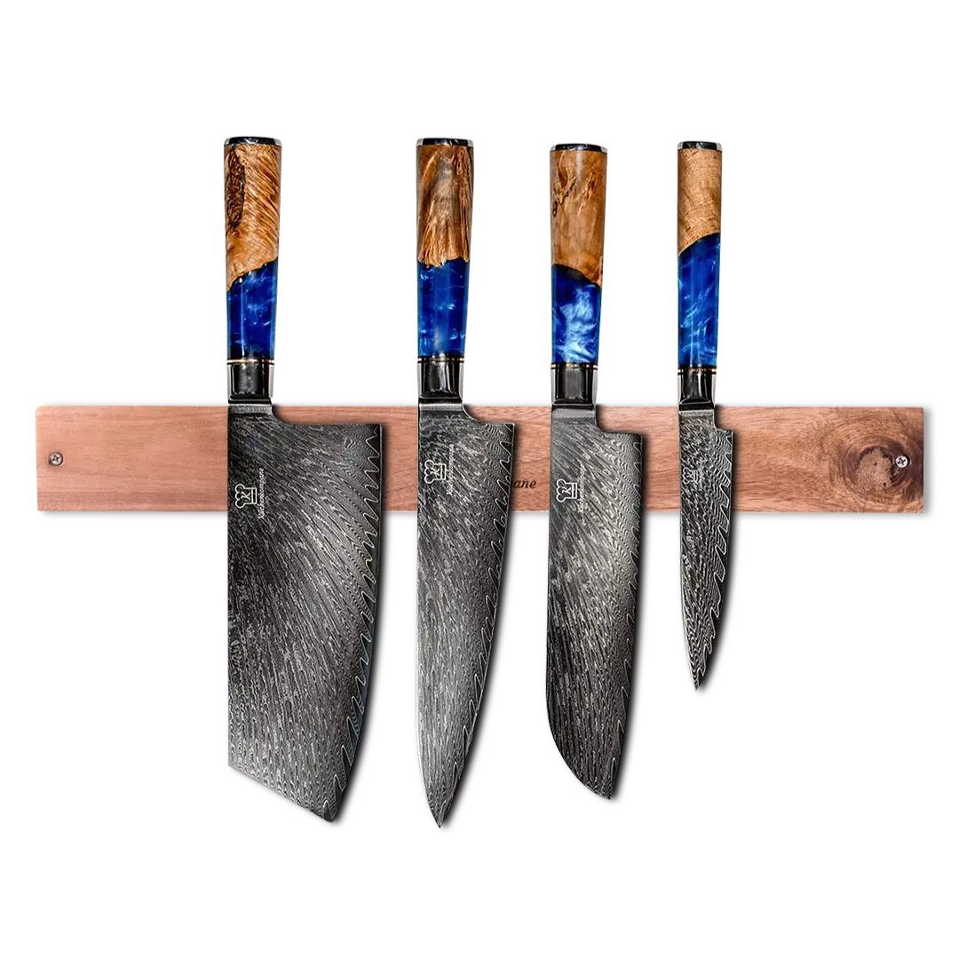 Der einzigartige Griff besteht aus wunderschönem Holz und blauem Harz, die zusammen ein visuell beeindruckendes Meisterwerk ergeben, das perfekt in deine Küche passt.