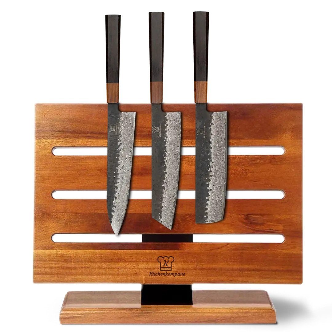 Das Set enthält zusätzlich einen passenden magnetischen Messerhalter aus Holz, der deine Messer sicher und griffbereit aufbewahrt. So hast du immer das passende Messer zur Hand, wenn du es brauchst.