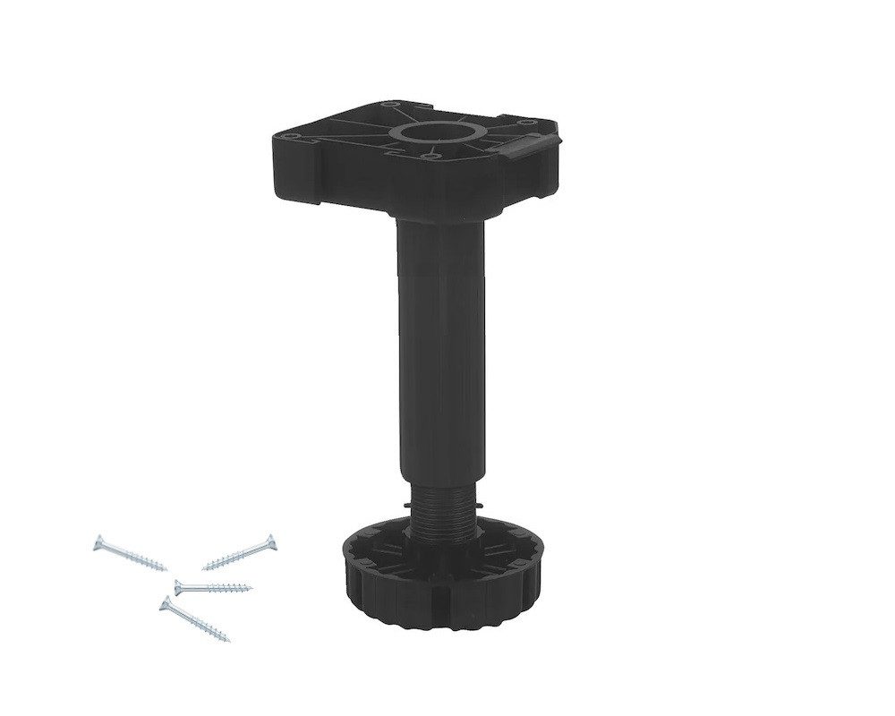Der 200er Sockelfuß eignet sich zum Ausrichten und Positionieren von Schränken, egal welche Bodenbeschaffenheit bauseits vorhanden ist. Um dies zu erreichen, kann der Möbelgleiter am Schrakboden befestigt und mit Hilfe des Stellfußes in die jeweilige Höhe gebracht werden. So sind eventuelle Unebenheiten im Fußboden für das Aufstellen von Einbauküche und Co kein Problem. Zudem ist der Fuß so konstruiert, dass er die Seitenwand des Mobiliars zusätzlich stützt. Ferner kann nach erfolgter Montage des Möbelfußes mit Hilfe beiliegender Clipse die Sockelblende angesteckt werden. Eine Tragkraft von bis zu 500kg garantiert den Einsatz für Möbel im gesamten Wohnbereich.