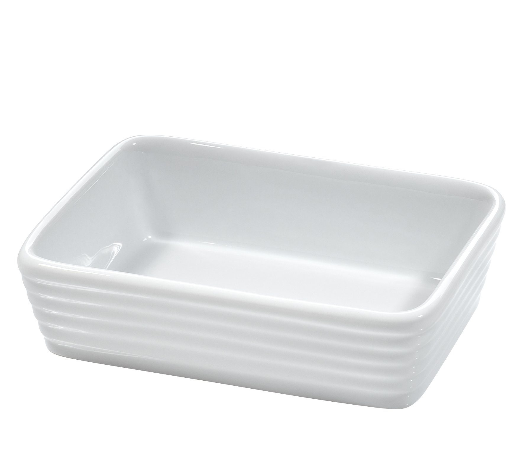 Rechteckige Auflaufform mit den Maßen 12,5 x 8 x 3,5 cm (L/B/H) aus ofenfestem Hartporzellan, gebrannt bei ca. 1400° Celsius, backofenfest bis 280° Celsius, auch für Kühl- und Gefrierschrank geeignet, stoßfest & kantestabil