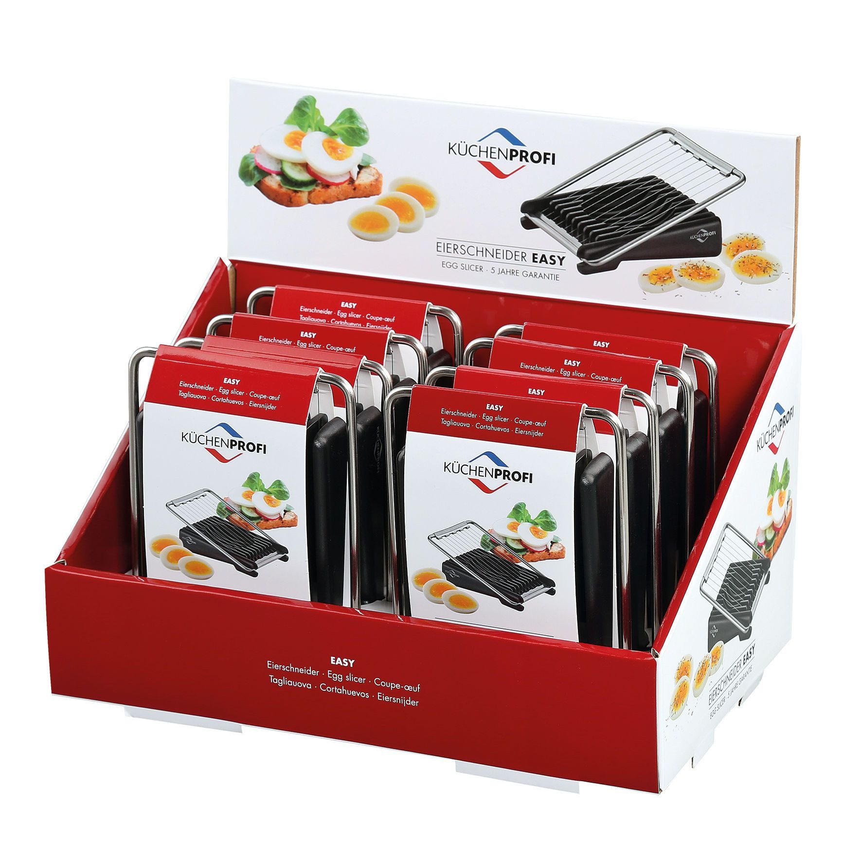Für einen Küchenprofi definitiv ungeeignet, da viel zu klein. Beim Schneiden fällt das Ei bzw die Einzelteile links und rechts vom Eierschneider runter und verteilen sich unschön auf der Arbeitsfläche. Auch wird das Ei nicht sonderlich gut geschnitten sondern vorwiegend gequetscht - leider ein Fehlkauf!