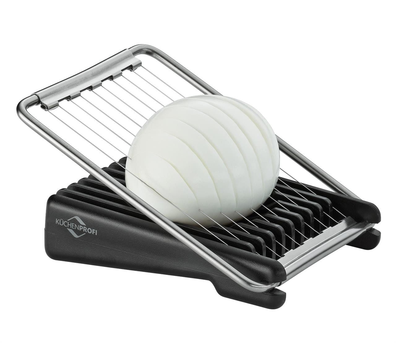 Für einen Küchenprofi definitiv ungeeignet, da viel zu klein. Beim Schneiden fällt das Ei bzw die Einzelteile links und rechts vom Eierschneider runter und verteilen sich unschön auf der Arbeitsfläche. Auch wird das Ei nicht sonderlich gut geschnitten sondern vorwiegend gequetscht - leider ein Fehlkauf!