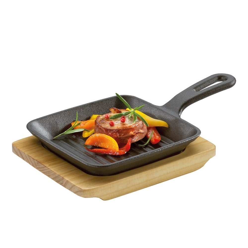 1x Küchenprofi BBQ Grillpfanne 23 x 13,5 x 5,5 cm Servierpfanne mit Holzbrett