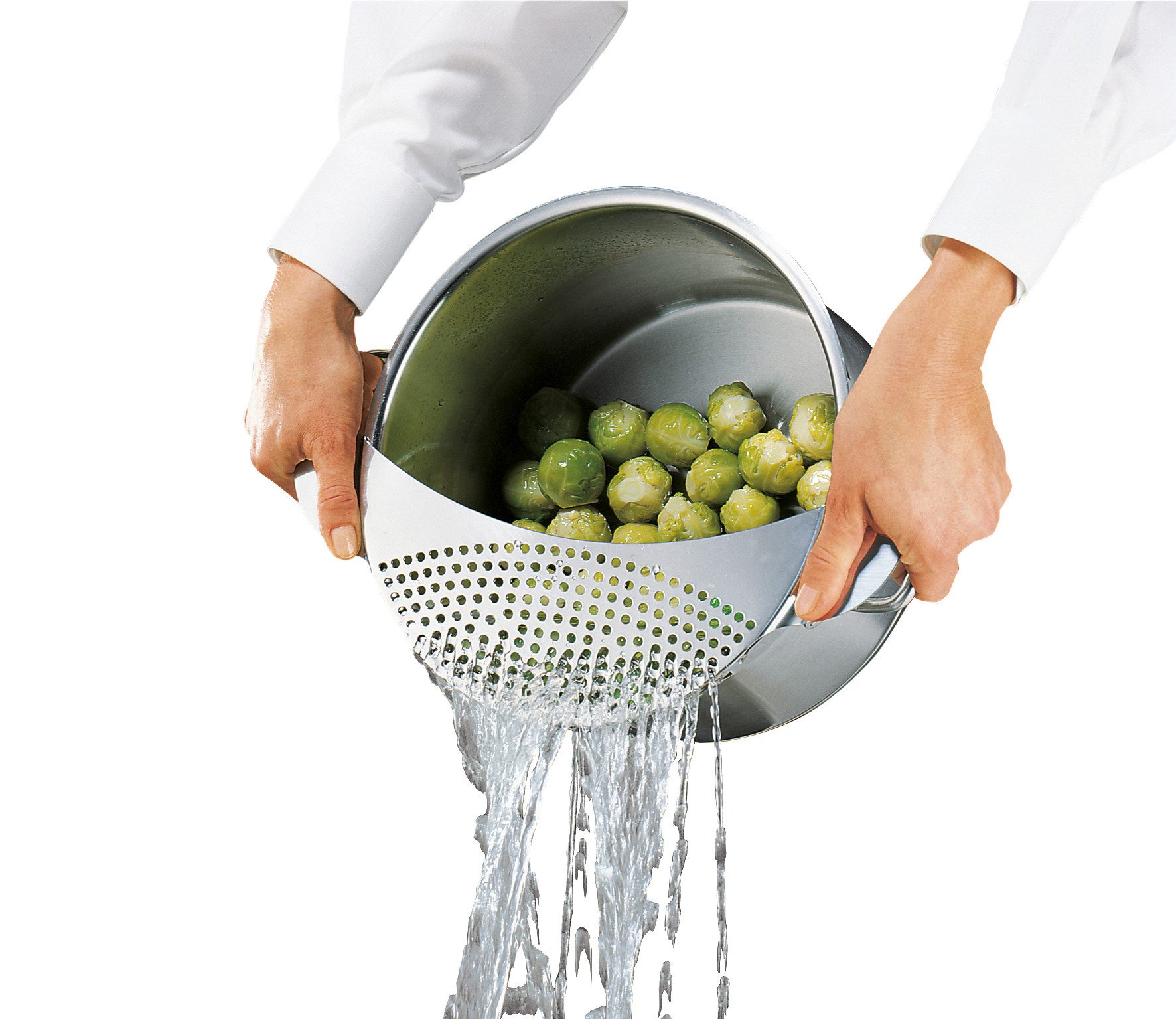 aus Edelstahlösicheres Abgießen ohne sich die Fingerözu verbrühenöMaße: 33,5cm Breiteöpassend bis 24,0cm Durchmesser