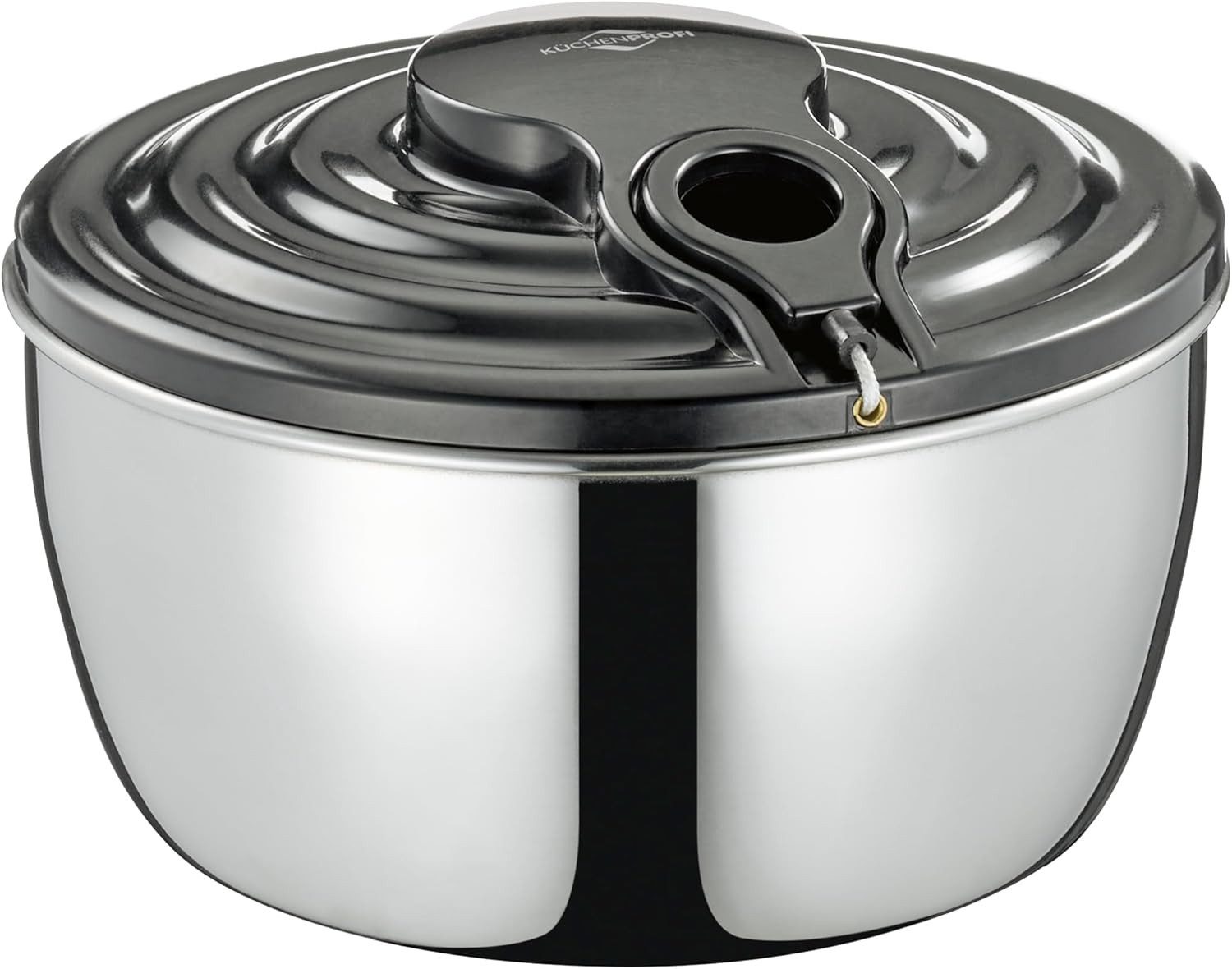 Edelstahlsalatschleuder schwarz mit Seilzugtechnik