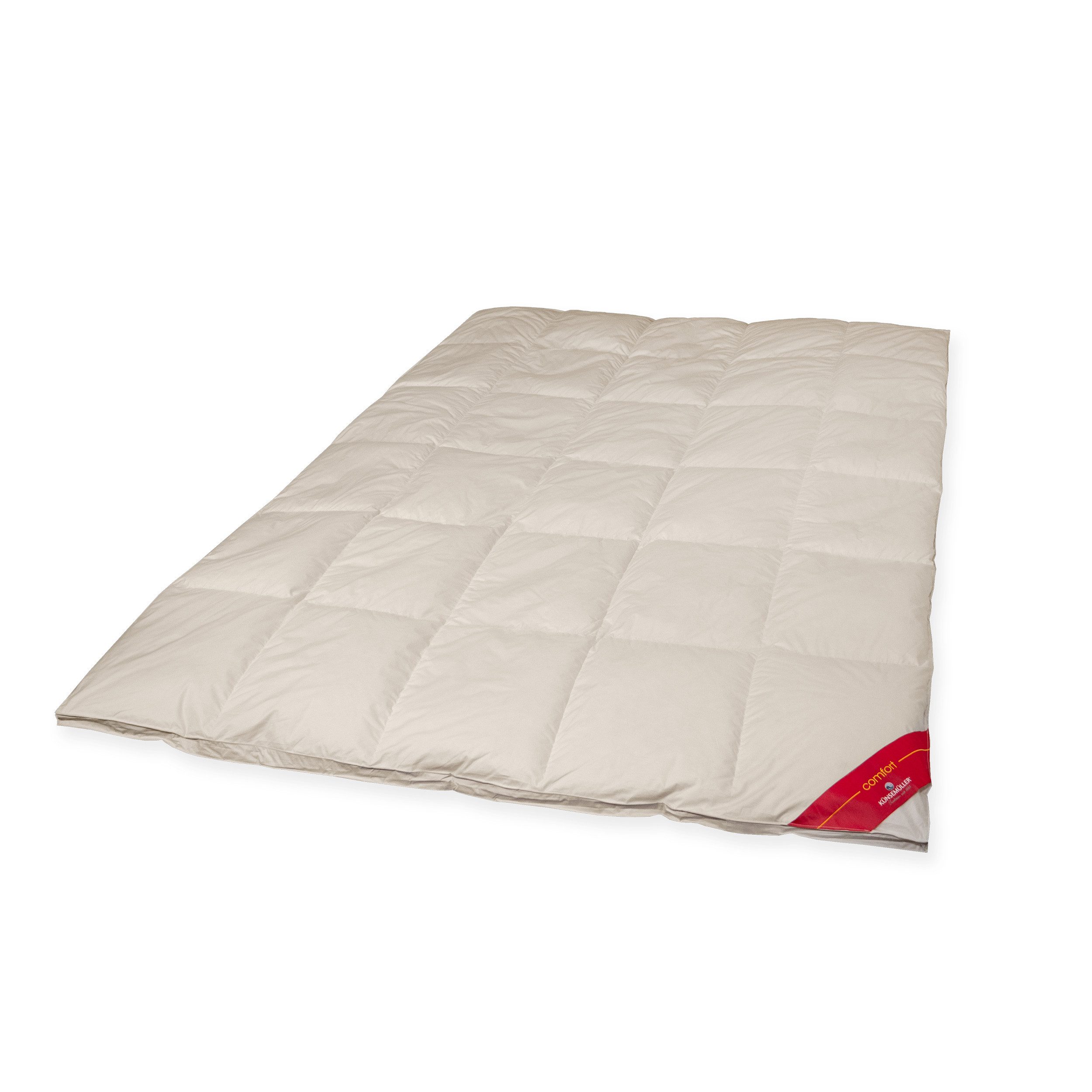 Das heißt je besser die Qualität von Federn und Daunen ist desto weniger Füllung wird benötigt um bestmögliche Ergebnisse zu erreichen. Kombiniert mit Bezügen aus hochwertigem Baumwollbatist, die durch Steigerung der Garnfeinheit (Nm) ebenfalls immer leichter und anschmiegsamer werden, entstehen echte Meisterwerke.