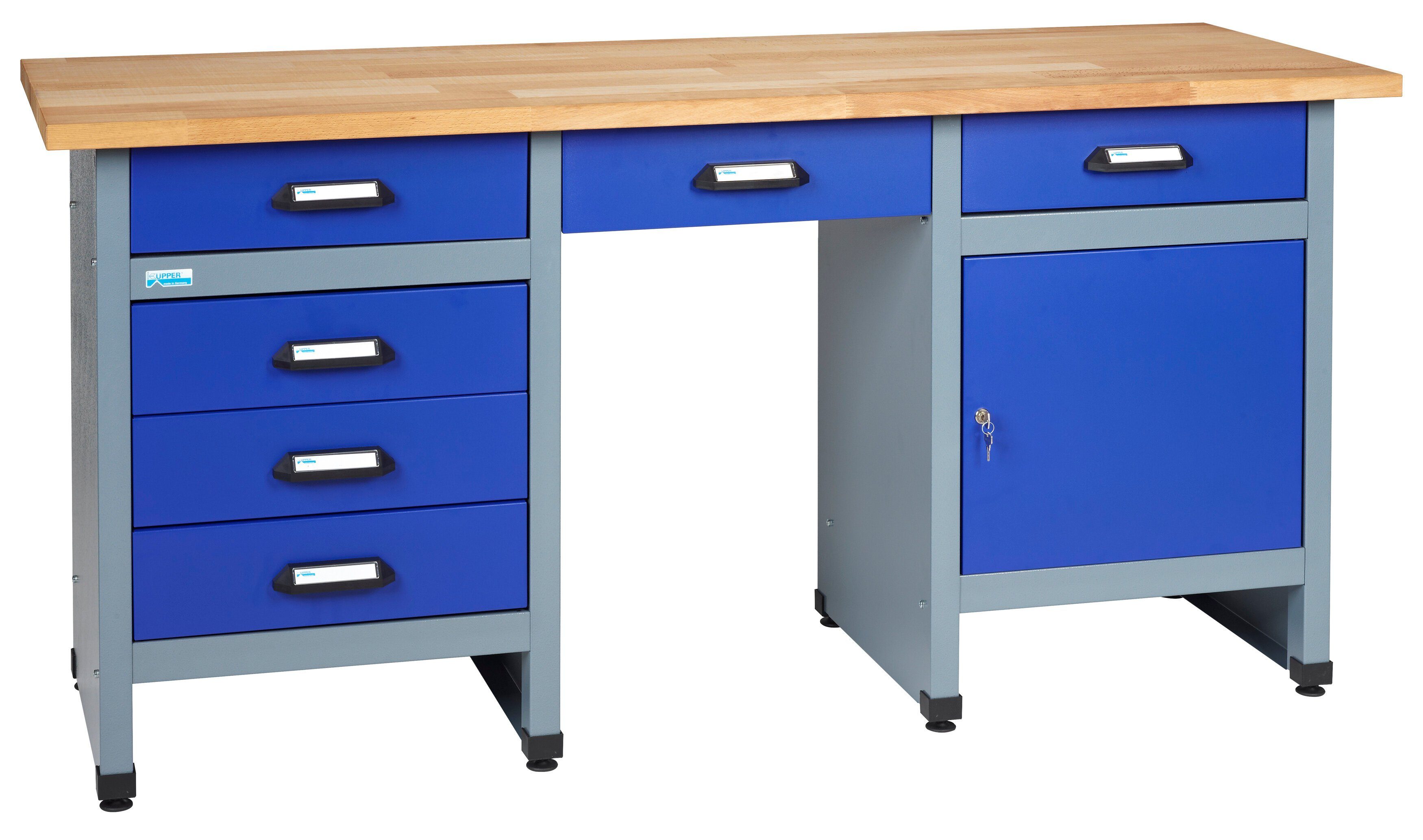 Ausstattung | 6 Schubladen H. 12 cm 1 verschließbare Tür massive Buchenplatte, 30 mm stark |