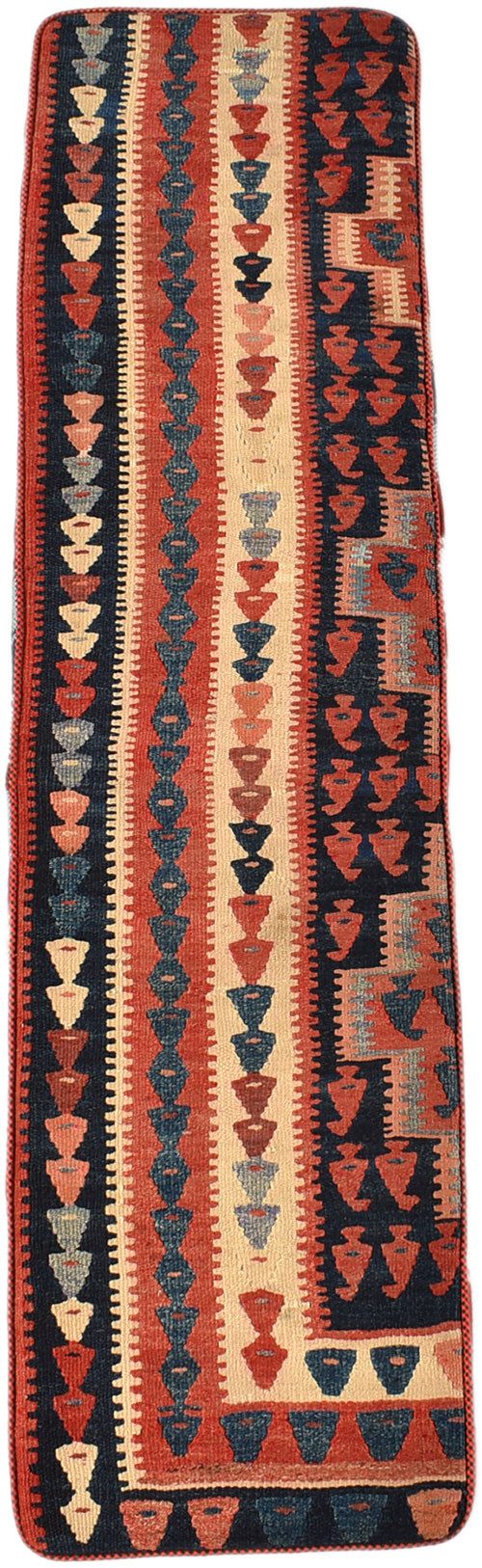 Unsere Kelim Bankauflagen sind robust, langlebig und qualitativ sehr hochwertig. Die für die Herstellung dieser Kelim Bankauflage verwendeten Kelims bestehen aus handgesponnener Schafswolle und sind mit natürlichen Farben gefärbt.