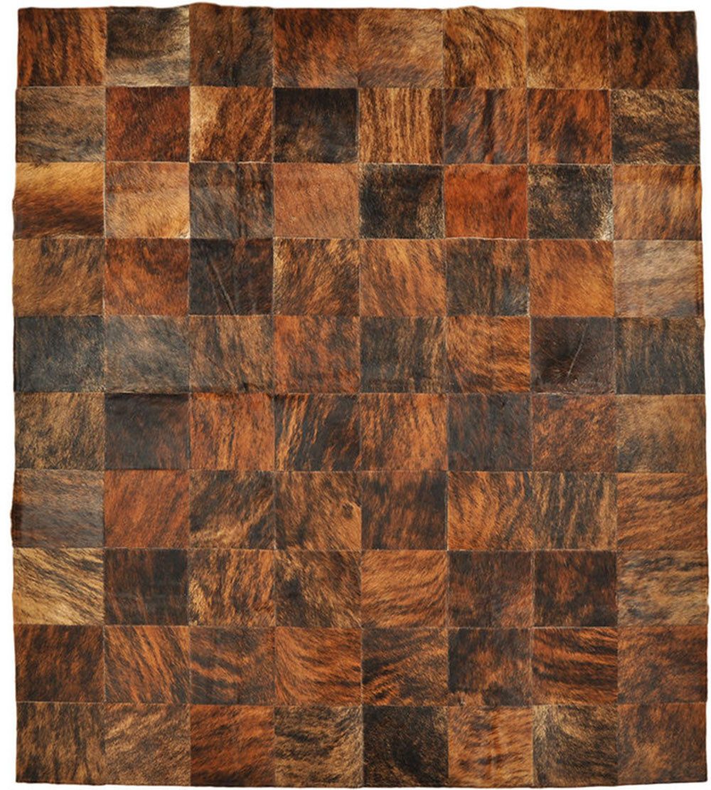Entdecke den exquisiten Kuhfell Patchwork Teppich aus Brasilien, 160 x 200 cm groß mit vielfältigen Farbvariationen und 20 x 20 cm großen Patches. Jeder Teppich ist ein Unikat, handgefertigt aus hochwertigem brasilianischen Kuhfell, das sowohl Luxus als auch Natürlichkeit in dein Zuhause bringt.