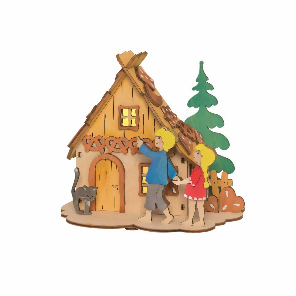 Dieses liebevoll gestaltete Kuhnert Bastelset lässt Bastelfreunde eine märchenhafte Teelichthalter-Dekoration mit Hänsel und Gretel-Motiv aus Holz selbst zusammenbauen. Ideal als Geschenk oder für die eigene gemütliche Dekoration.