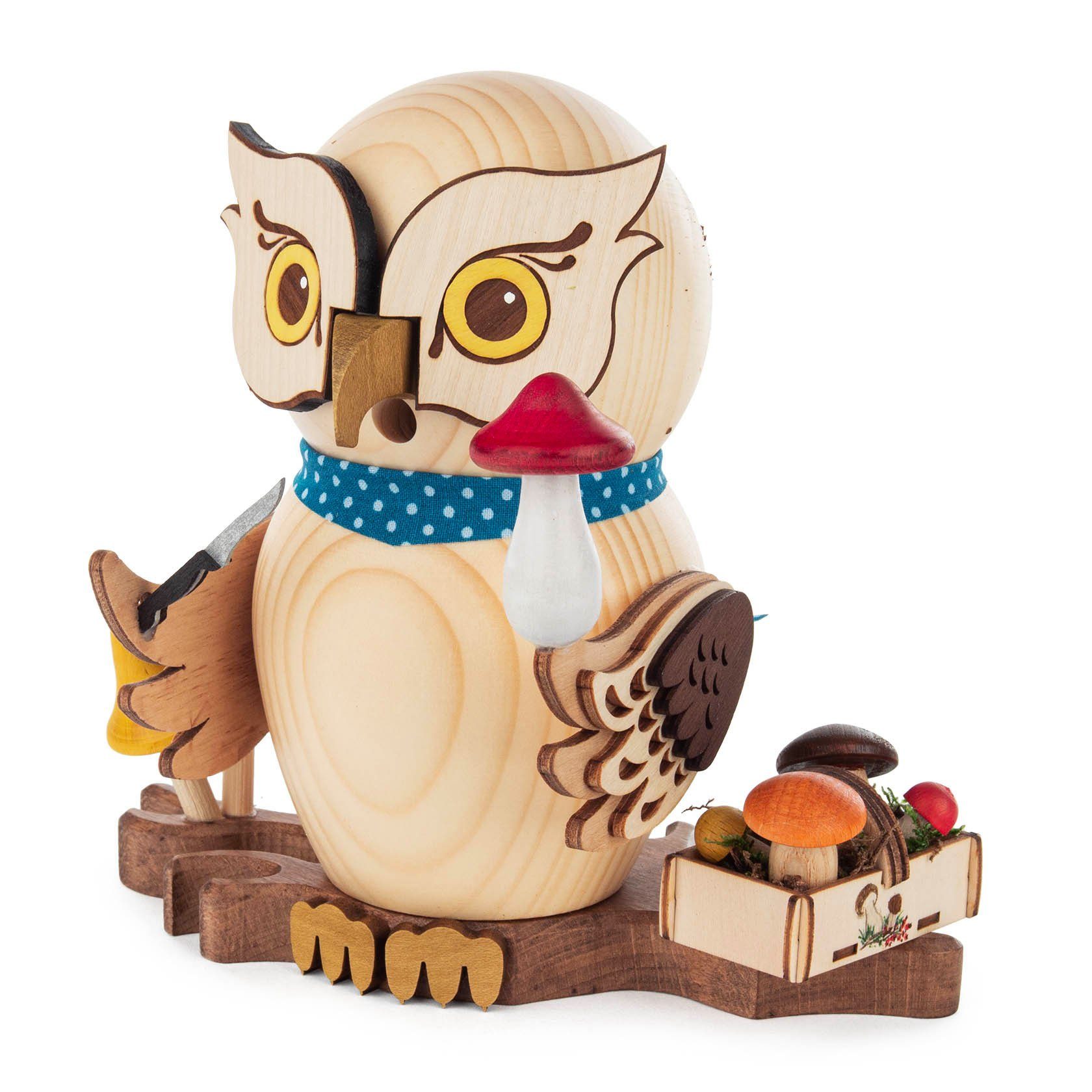 Räuchereule groß Pilzsammler- tolle Deko Diese Räucherfigur ist die perfekte Dekoration für die Herbstsaison. Sie bringt eine gemütliche und warme Atmosphäre in jeden Raum und ist ein echter Hingucker auf jedem Tisch oder Regal. In ihrer Hand hält sie einen großen Pilz und in der anderen ein Messer, bereit, weitere Pilze zu sammeln. Das blau-weiße Halstuch rundet das niedliche Design perfekt ab und verleiht der Figur einen besonderen Charme. Merkmale Räucherfigur Eule Pilzsammler mit Pilzkörbchen und Messer blau-weißes Halstuch geeignet für Räucherkerzen bis 25mm Hinweis Räucherkerzen dürfen nur auf einer feuerfesten Unterlage und unter Aufsicht benutzt werden.