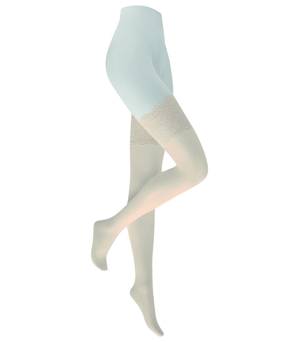 Hauchdünn und glänzend schmiegen sich die halterlosen Strümpfe SATIN LOOK 15 in 15 den Optik an Ihre Beine und sorgen so für einen glänzenden Auftritt. Durch die dezent verstärkte Fußspitze mit Maschenstopp werden Laufmaschen gehemmt und die weiche Spitzenflachnaht ermöglicht ein angenehmes Tragegefühl. Das elegante Spitzenabschlussband mit Blumenmuster und Doppelsilikonstreifen bietet optimalen Halt.