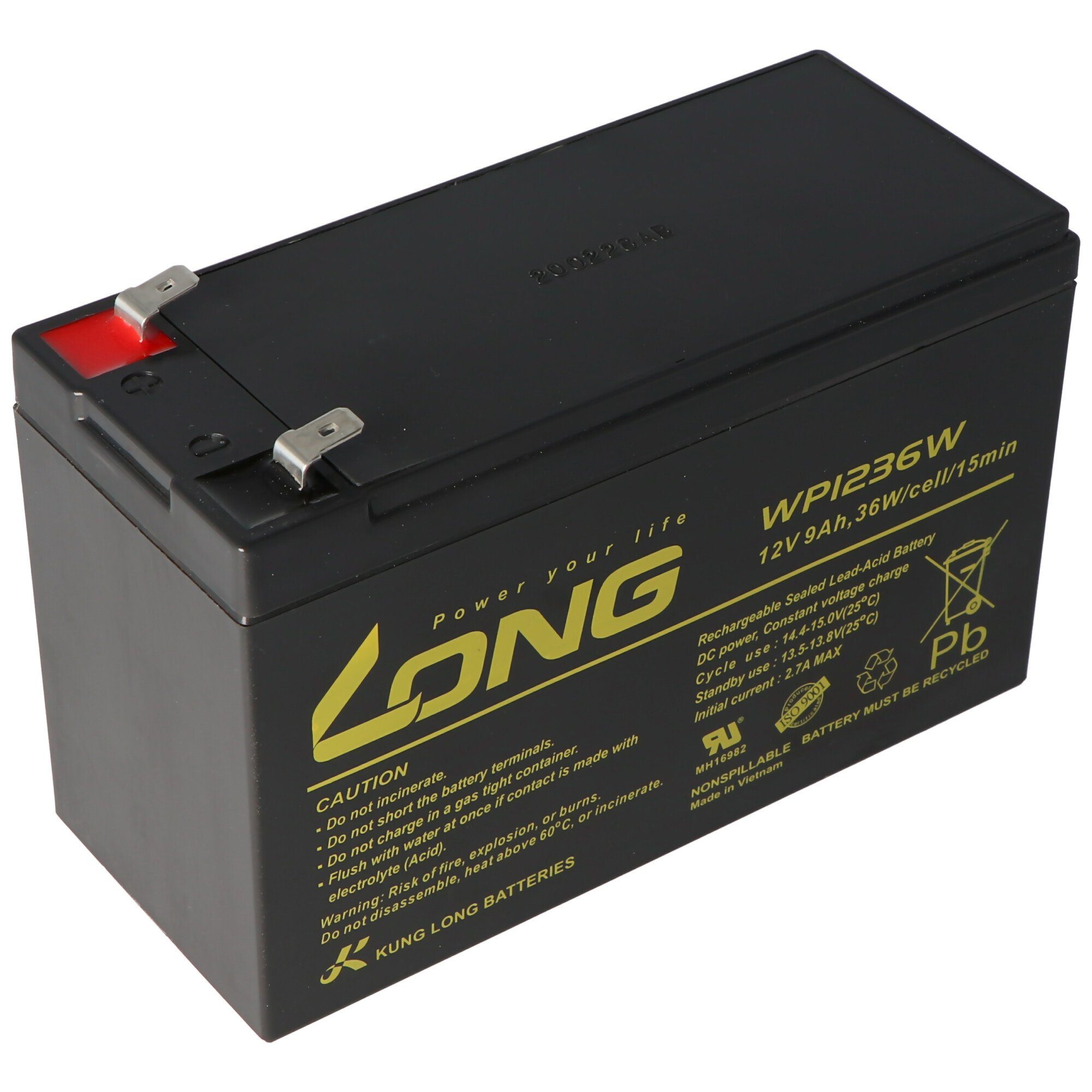 Kung Long Blei Akku 12V 9Ah WP1236W die hochstrom Bleigel AGM Akkus sind auch kompatibel zu Multipower MP1236H, HR1234WF2, Panasonic UP-RW1245P1, Teufel Rockster Air Lautsprecher etc.