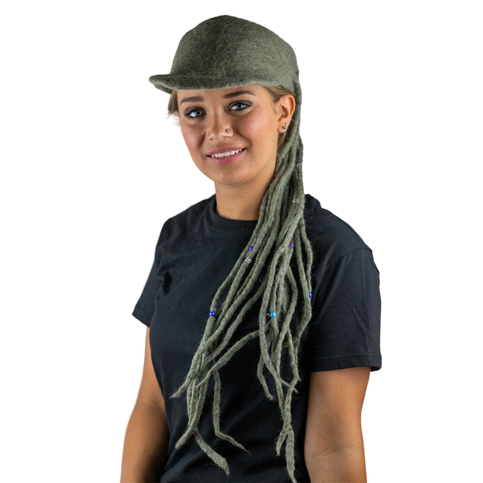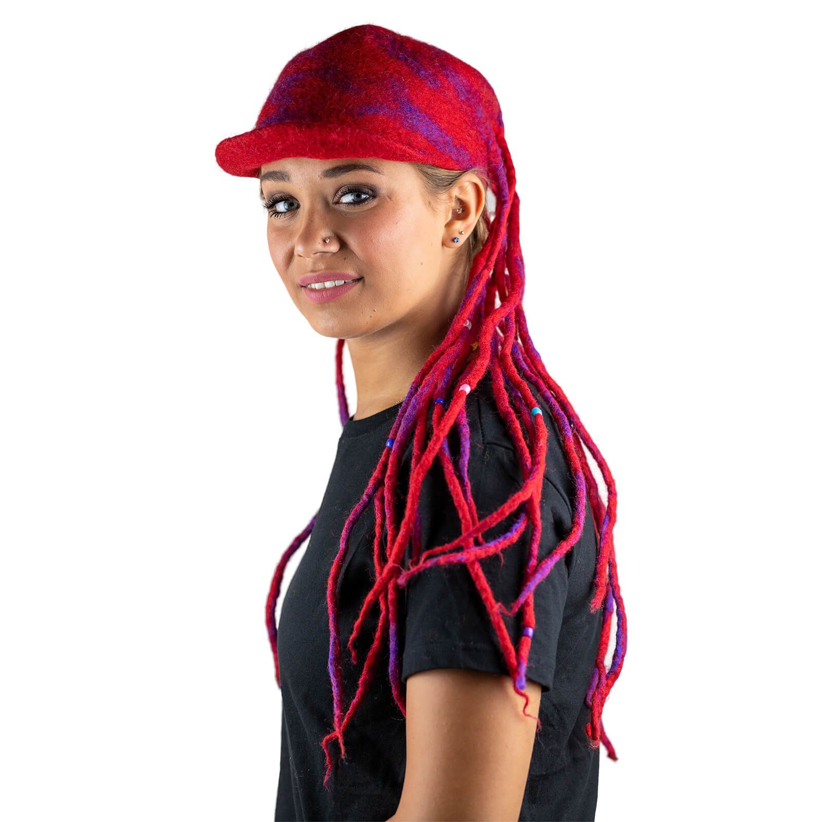 Ein Farbenfroher Hut mit eingearbeiteten handgefilzten Dreadlocks aus Wolle . Garantiert nicht unauffällig. Bunt, Frech, Farbenfroh!