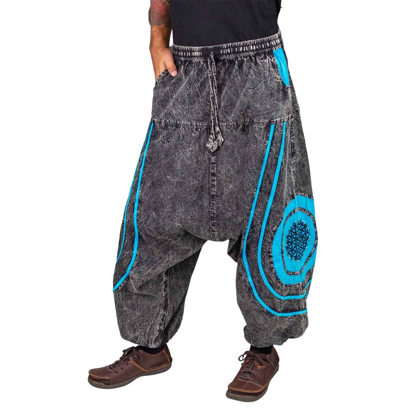 Stonewashed ist ein Textilherstellungsverfahren zur Veredelung von Textilien bei eine verwaschene used Optik absichtlich herbeigeführt wird. Der Effekt verläuft oft ungleichmäßig, so sieht jedes Teil ein wenig anders aus und wird zum Unikat!Die coole Baggy-Pant hat 2 Taschen und einen elastischen dehnbaren Bund mit Kordelzug an der Hüfte. Am Bein am Bein hat die Pluderhose dehnbaren Gummizüge unten an den Hosenbeinen kann die Длина der Goa- Hose variabel eingestellt werden.Fair und Sozial gehandelt: Natürlich stammt auch diese bunte Pluderhose von Kunst und Magie aus fairer Herstellung - Hergestellt wurde dieses alternative Kleidungsstück in Nepal in einem kleinem Familiär geführtem Betrieb