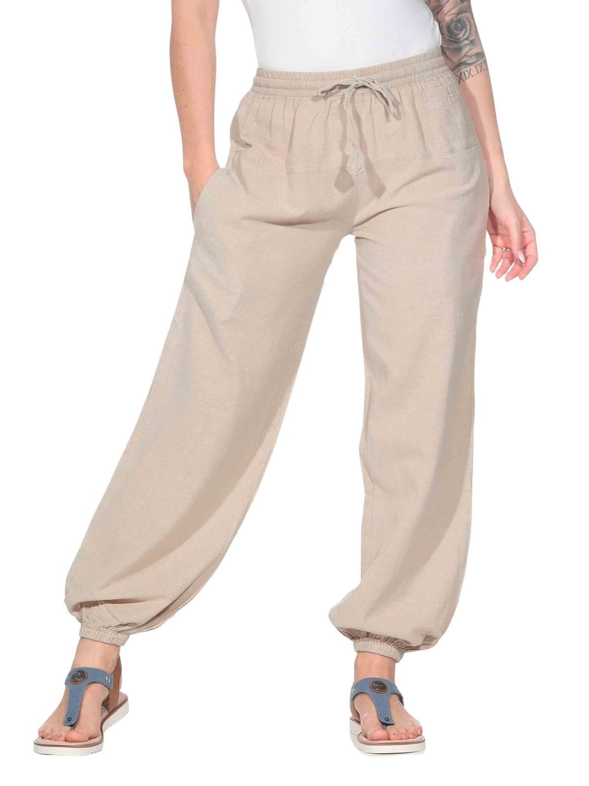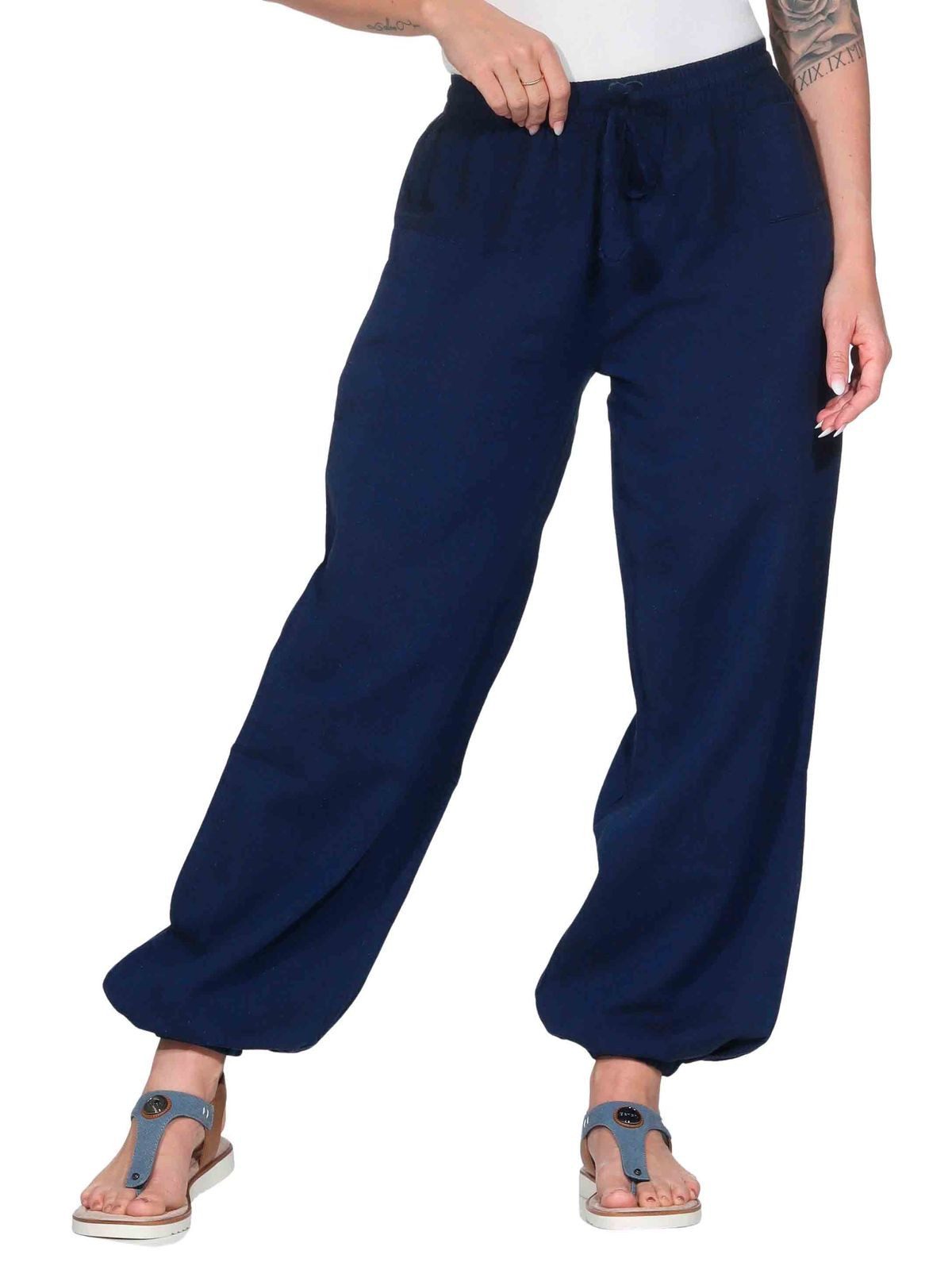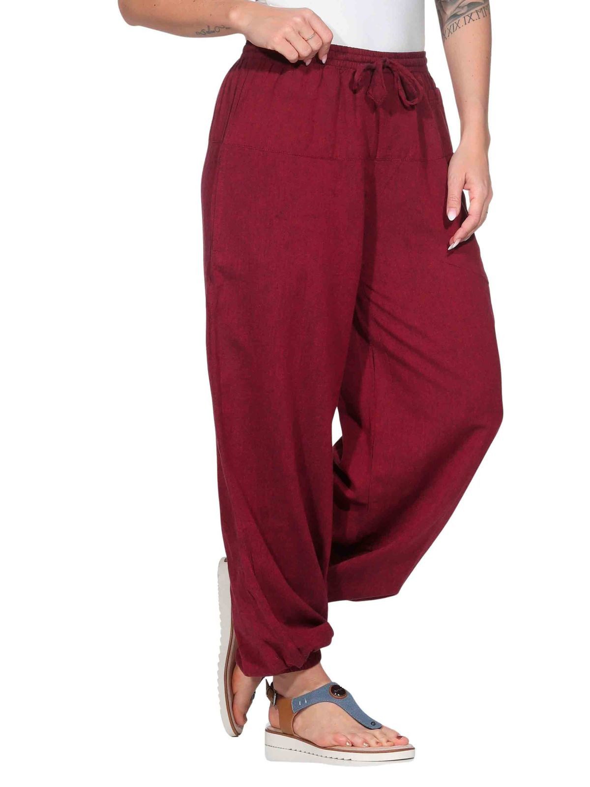 Die Gummizüge unten an den Hosenbeinen können auch auf Kniehöhe getragen werden und verwandeln so die Haremshose in eine bequeme kurze Hose