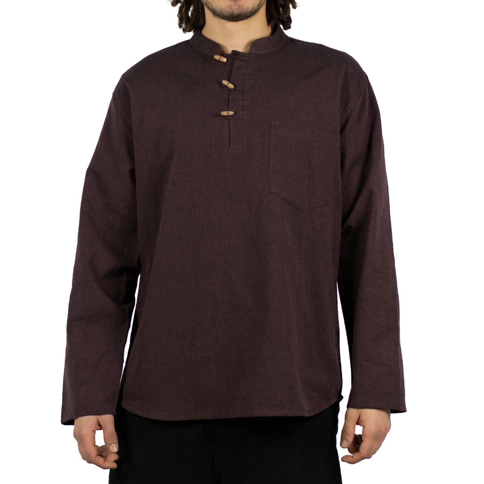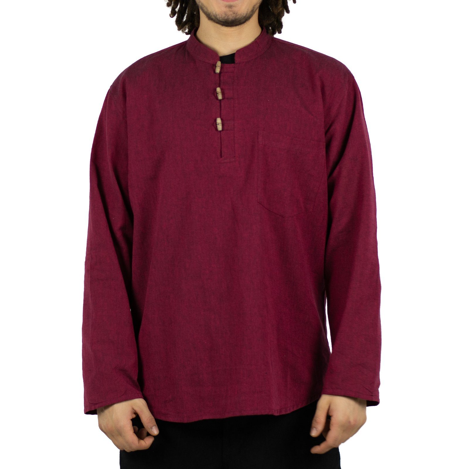 Alternatives Ethno Fischerhemd zum Überziehen - Nepal Kurtha / Schlupfhemd Holzfällerhemd Retro Trachtenhemd mit rundem Stehkragen