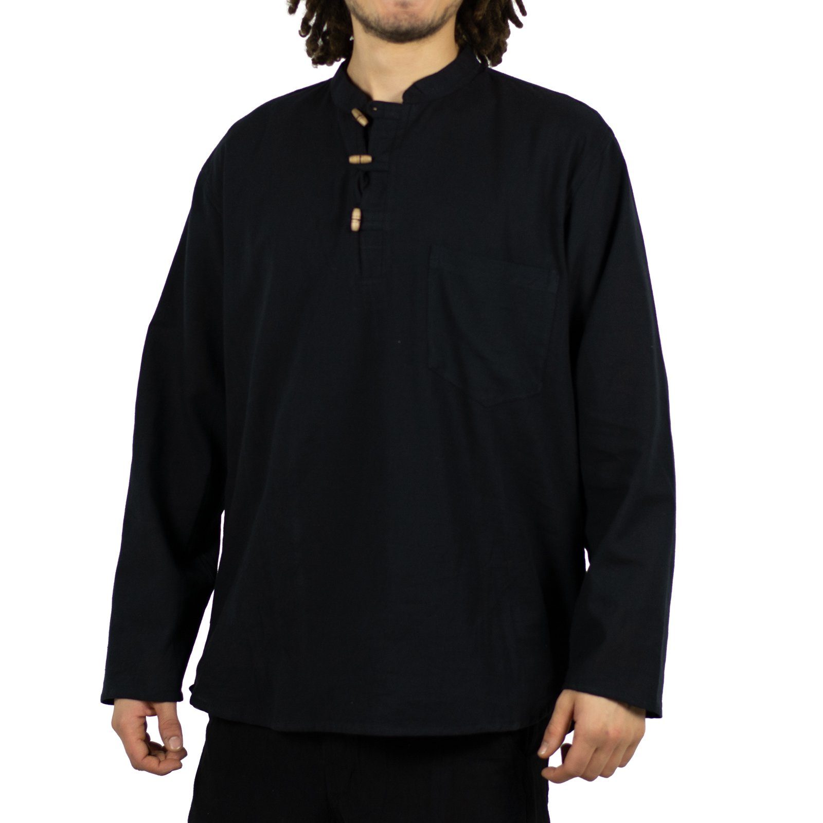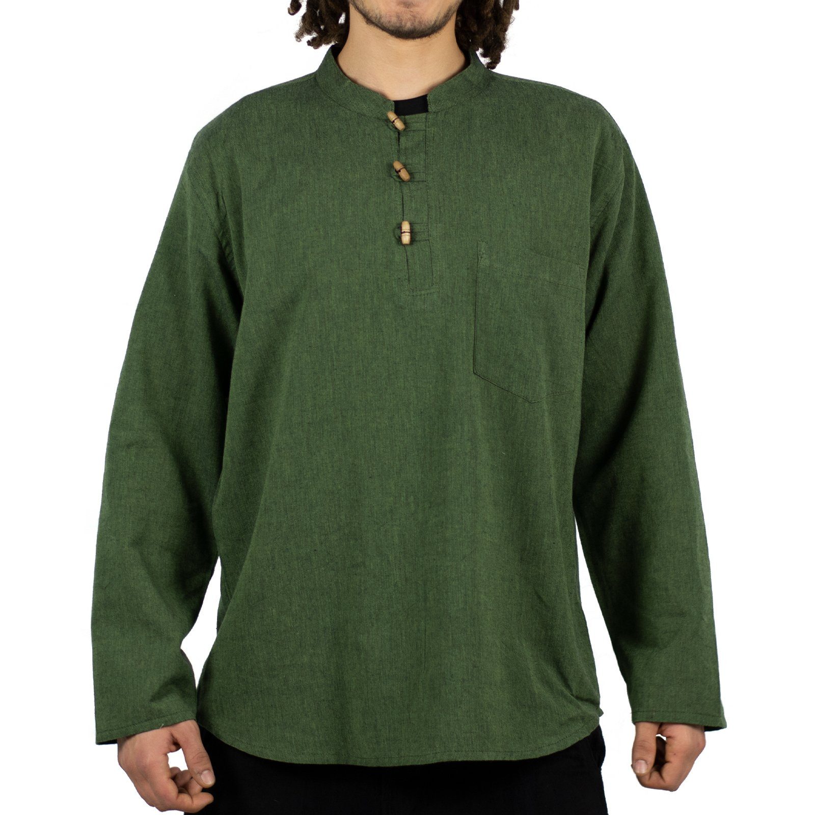 Das Hemd ist so BEQUEM geschnitten, dass es viel Bewegungsfreiheit lässt Mit halber Knopfleiste (3 Holzknöpfe) - Fair hergestellt in einem kleinem Familienbetrieb in Nepal