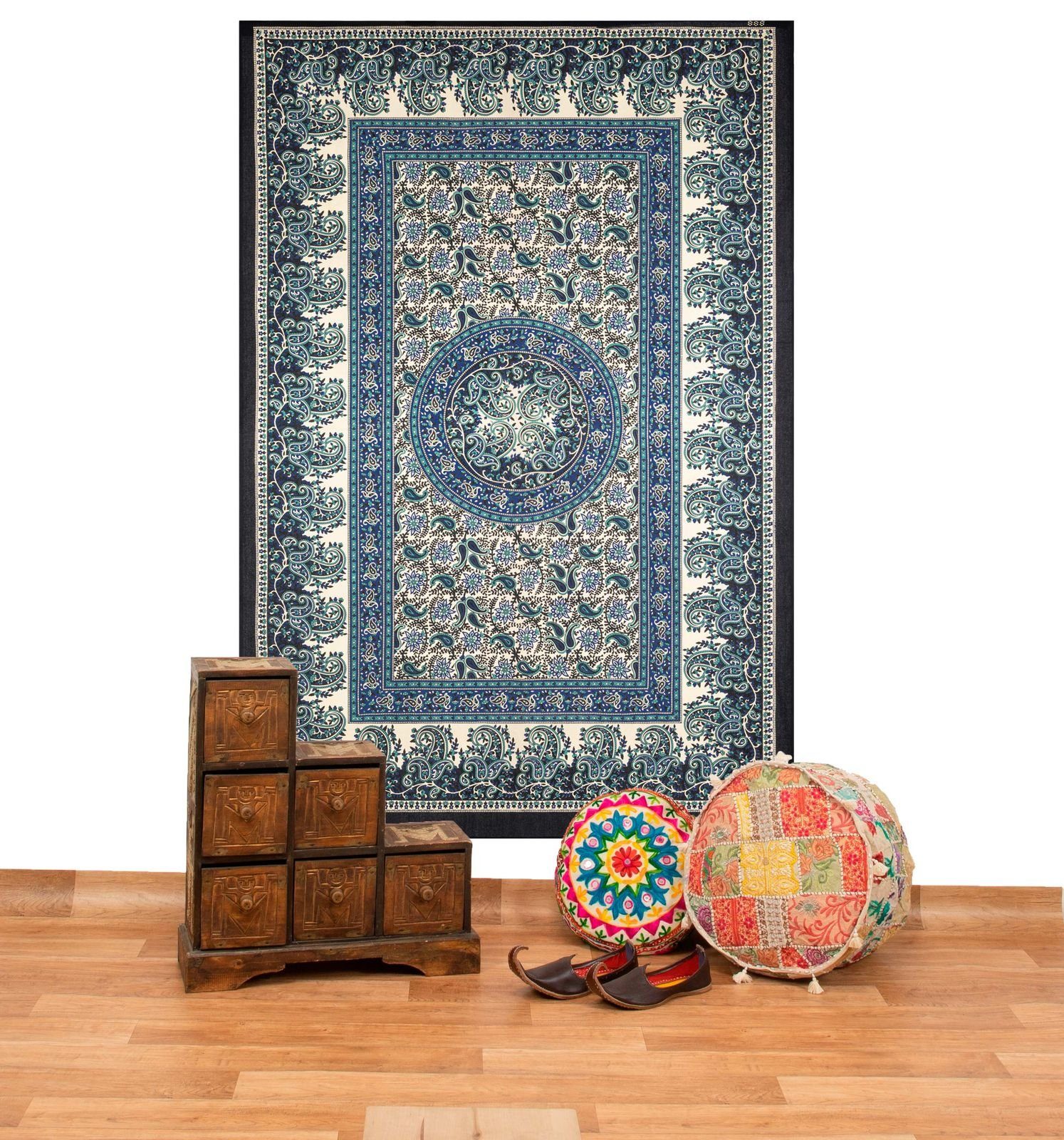 Entdecken Sie die Schönheit traditioneller indischer Handwerkskunst mit unserem exquisiten Wandbehang. Dieses einzigartige Stück ist nicht nur ein Blickfang für jede Wand, sondern auch vielseitig einsetzbar als Tischdecke, Raumteiler, Tagesdecke oder einfach zur Verschönerung Ihres Raumes.