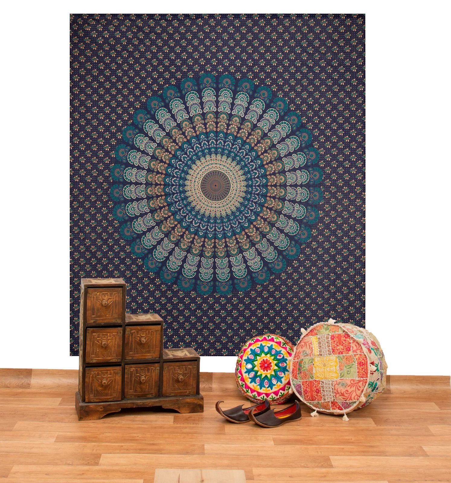 Wandteppich Tagesdecke Wandbehang Mandala Deko Tuch Peacock Pfau XL ca 200x230cm