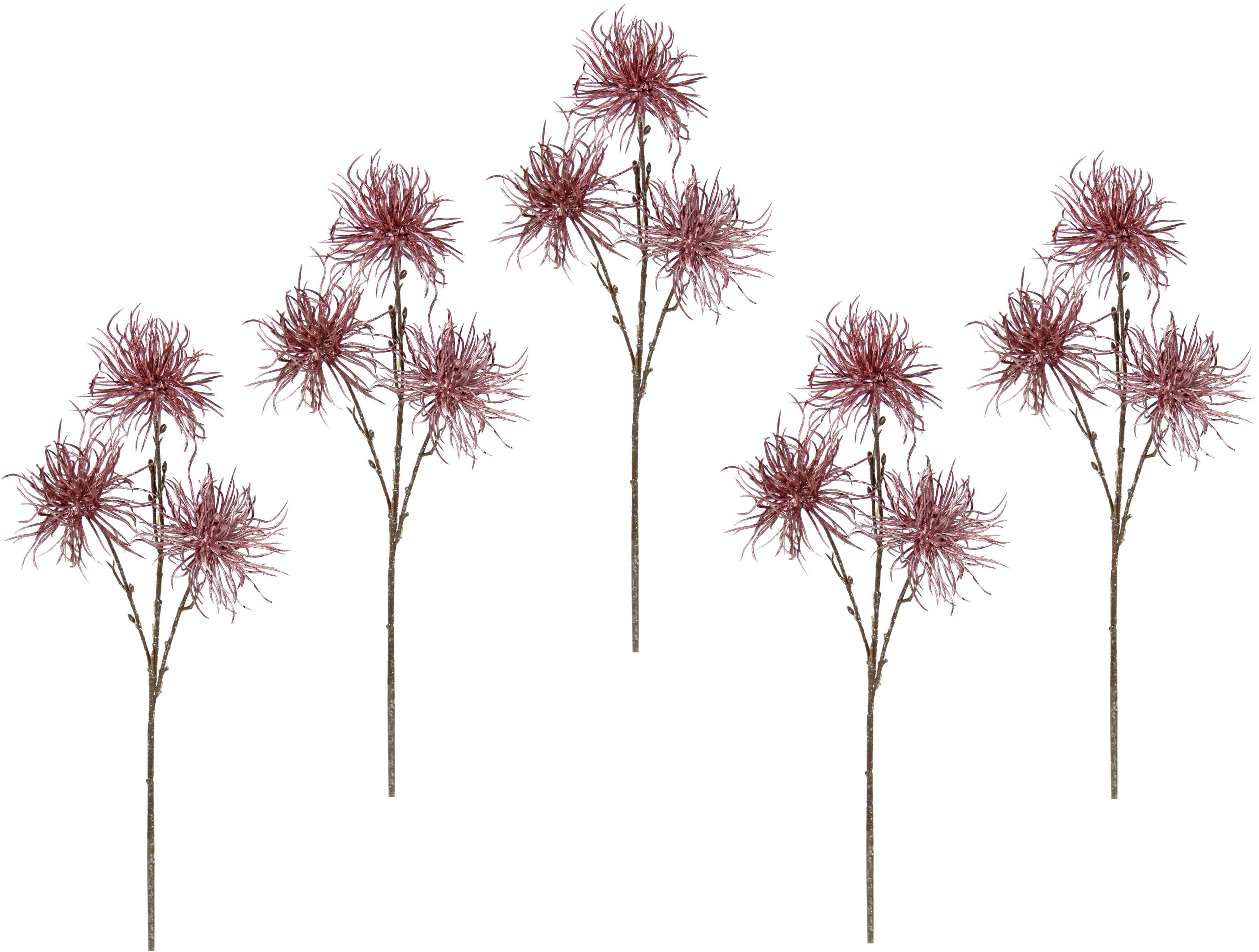 Dieser künstliche Distelzweig mit Glimmer und Frost-Optik ist für winterliche oder herbstliche Blumendekorationen, Deko-Arrangements, Kränze, Gestecke oder Blumensträuße bestens geeignet. So wie alle Blumen, Zweige, Sträucher und Bäume unserer Marke, ist der Distelzweig der Natur täuschend echt nachempfunden, sodass die Kunstpflanze all Ihren echten Pflanzen Konkurrenz macht. Und das Beste: Die hochwertige Kunstpflanze blüht noch viele Jahre in ihrer vollen Pracht, sodass Sie extra lange Freude an der langlebigen Kunstblume haben werden. Sollten die Blüten durch den Transport etwas in Form gebracht werden, hilft hier LEICHTE! Haartrocknerwärme. Die Kunstblume wird im 5er Set versendet.