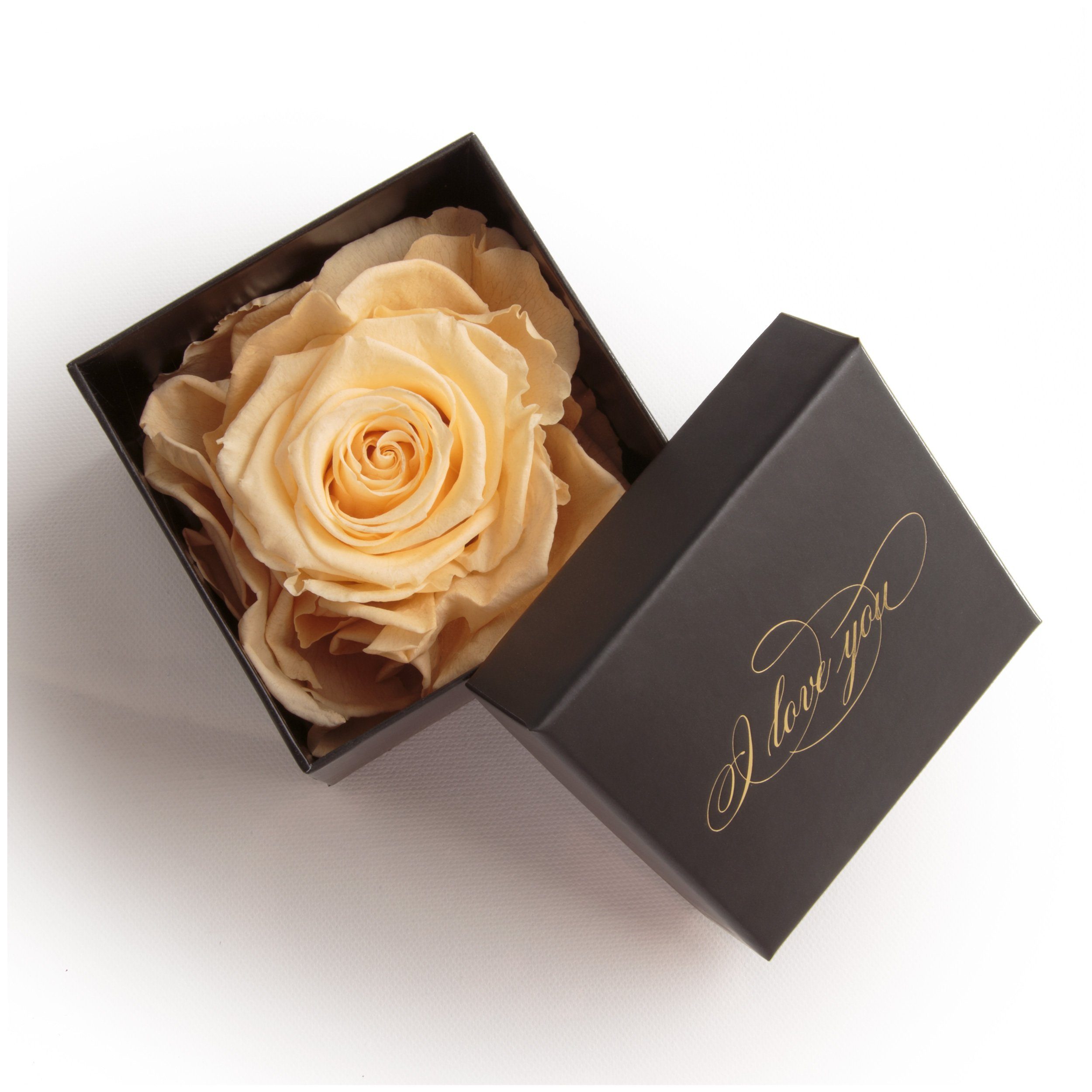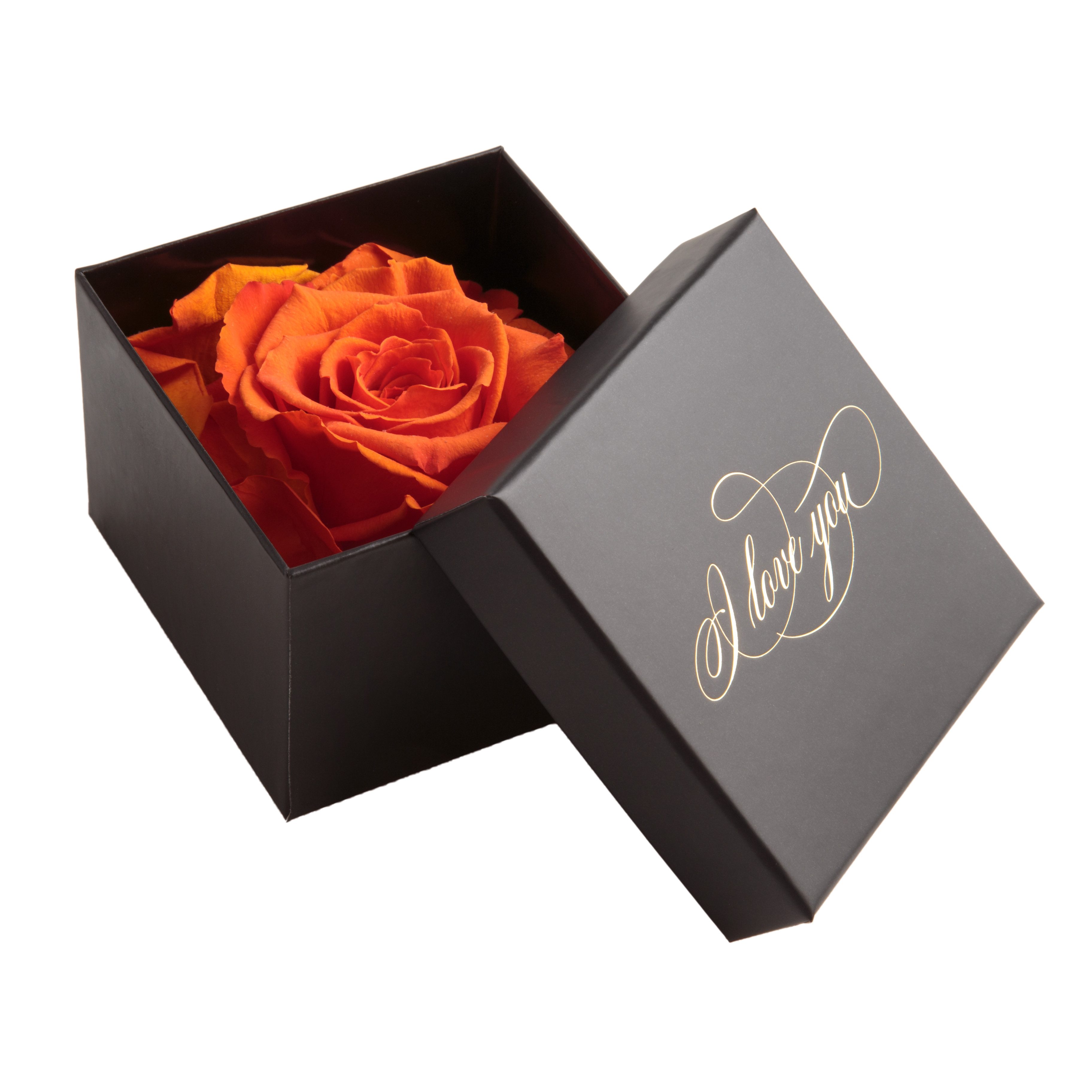 Lieferumfang | Schachtel mit 1 infinity Rose, Deckel beschriftet in Gold mit I Love You |