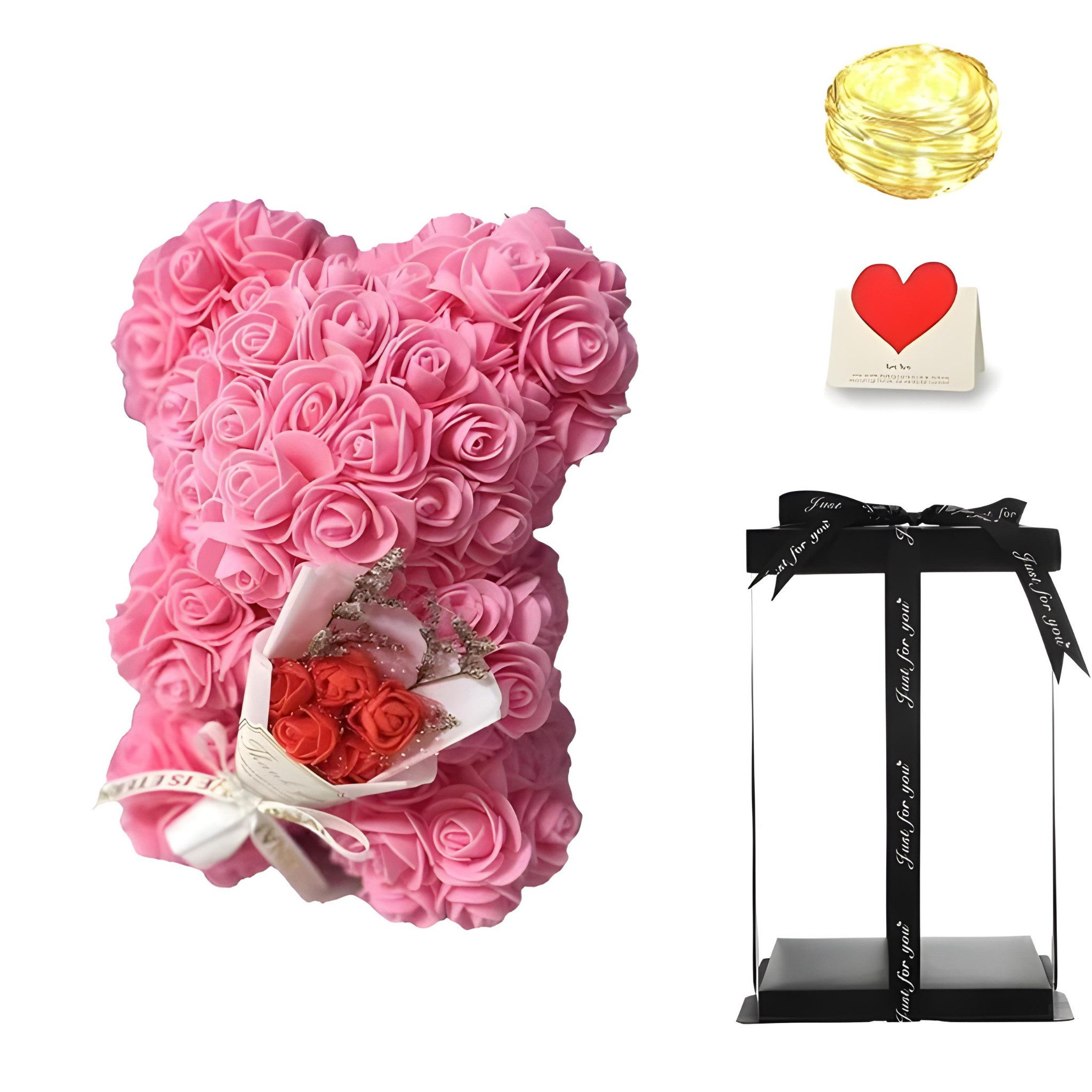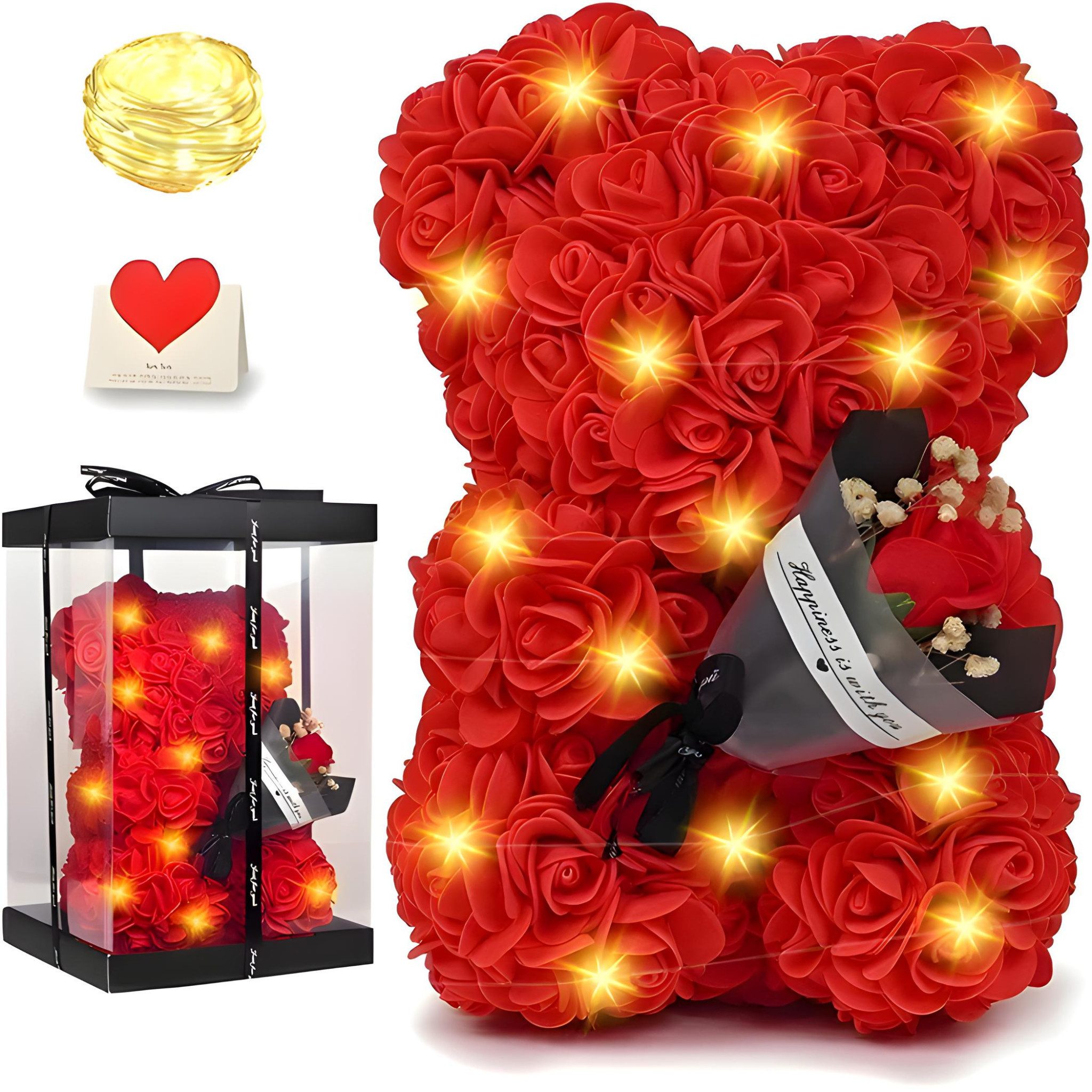 Einzigartige Artikelbeschreibung: Das perfekte Geschenk für besondere Momente Überraschen Sie Ihre Liebsten mit einem besonderen Geschenk. Dieses Geschenkset ist die perfekte Wahl, wenn Sie auf der Suche nach einem Weihnachtsgeschenk, einem Valentinstagsgeschenk oder einem Jubiläumsgeschenk für sie sind. Es kombiniert Romantik, Eleganz und Liebe – ideal für Ihre Frau, Freundin, Mutter oder Großmutter. Inhalt des Sets: 1x Rose Bear: Ein handgefertigter Bär aus künstlichen Rosen, der nie verblüht – ein ewiges Symbol der Liebe. 1x Geschenkbox: Eine stoßfeste Box sorgt dafür, dass das Geschenk in makellosem Zustand ankommt. 1x Grußkarte: Persönliche Botschaften machen jedes Geschenk noch spezieller. 1x Lichterkette: Verleiht dem Geschenkset einen romantischen Glanz und zaubert ein Lächeln ins Gesicht Ihrer Liebsten. Handgefertigte Qualität: Der Rose Bear besteht aus künstlichen Rosenblüten, die liebevoll arrangiert wurden. Dieses langlebige und symbolische Geschenk eignet sich perfekt, um Ihre Zuneigung auszudrücken. Produktdetails: Maße des Rosen Bärs: ca. 25 cm Material: Kunstrosen, die für eine zeitlose Optik sorgen Dekorativ und langlebig: Ein charmantes Dekoelement für Regale oder Tische – immer eine süße Erinnerung an Ihre Liebe. Warum dieses Geschenkset? Dieses Geschenkset ist mehr als nur ein Geschenk – es ist eine Botschaft. Zeigen Sie Ihren Liebsten, wie viel sie Ihnen bedeuten, mit einem einzigartigen Geschenk, das Liebe und Aufmerksamkeit widerspiegelt. Perfektes Valentinstagsgeschenk! Überraschen Sie Ihre Freundin oder Partnerin zum Valentinstag mit einem Geschenk, das Romantik und Zuneigung ausdrückt. Der Rosen Bär und die charmante Beleuchtung schaffen eine unvergessliche Atmosphäre für diesen besonderen Tag. Perfekt für die Freundin: Wenn Sie Ihrer Freundin ein Geschenk machen möchten, das sie begeistert und gleichzeitig Ihre Liebe betont, ist dieses Set genau das Richtige. Ob Geburtstag, Jahrestag oder einfach, um Ihre Gefühle zu zeigen – dieses Geschenk wird sie verzaubern. Das ideale Geschenk für jede Gelegenheit: Ob Weihnachten, Valentinstag, Jubiläum oder einfach nur, um jemandem zu zeigen, dass Sie an ihn denken – dieses Geschenkset ist eine außergewöhnliche Wahl. Sichern Sie sich jetzt dieses bezaubernde Geschenkset und bereiten Sie Ihren Liebsten eine unvergessliche Freude!