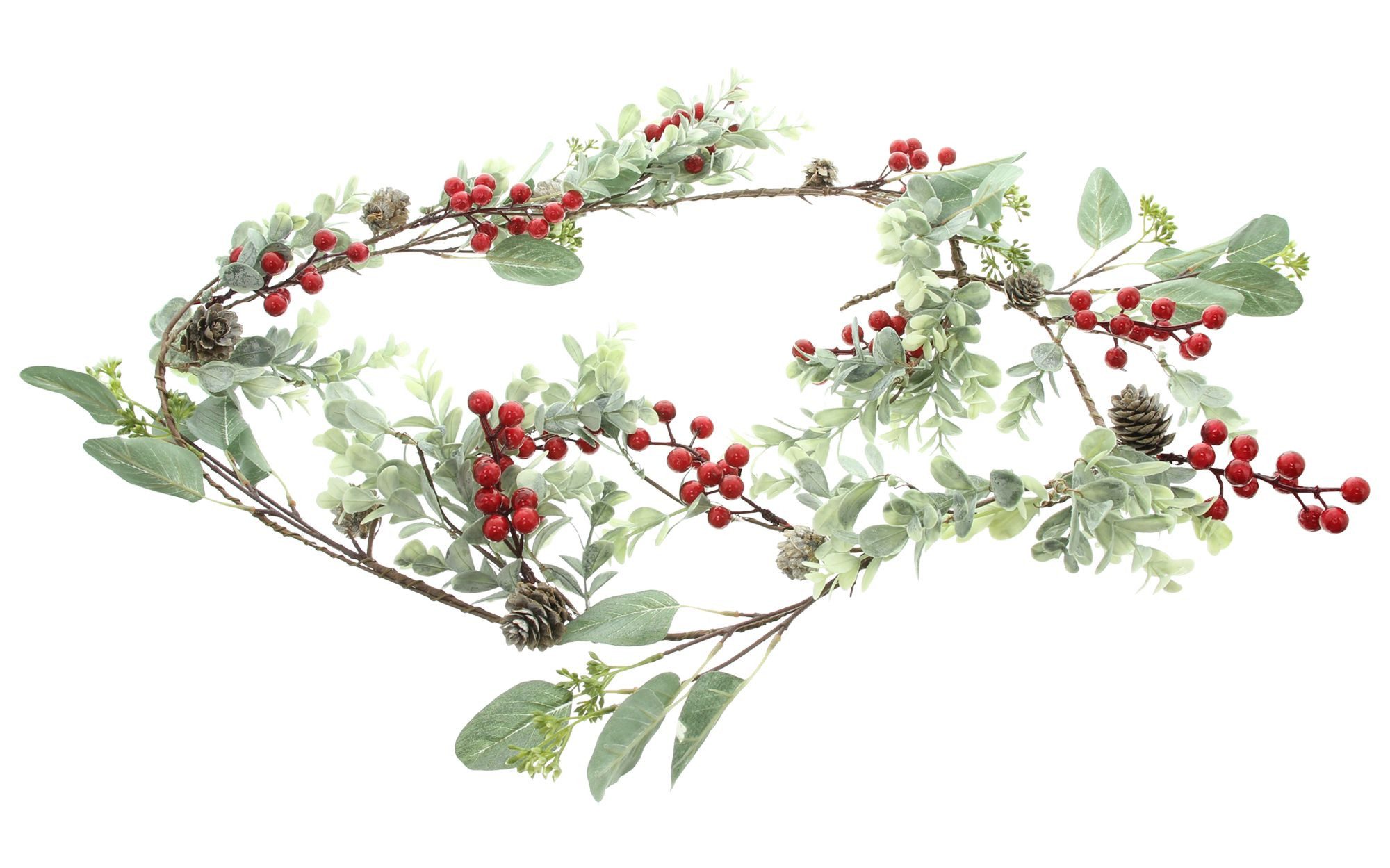 Verziert mit naturgetreuen Zapfen und leuchtend roten Beeren, vereint die Girlande klassische Weihnachtsfarben mit einer natürlichen Anmutung. Die detailreiche Gestaltung macht sie zu einem echten Blickfang, der in jedem Raum festliche Akzente setzt.