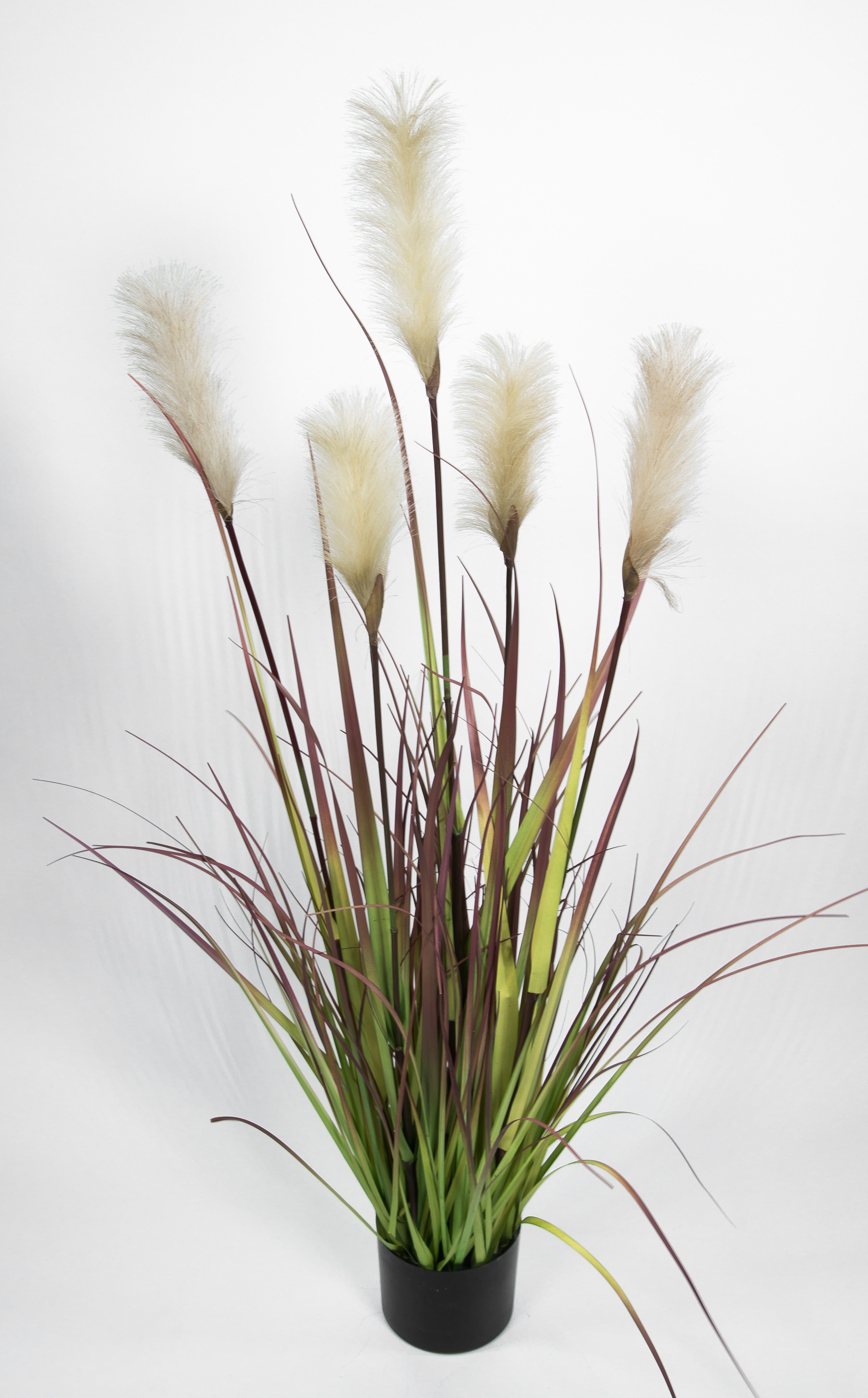 An dieser Kunstpflanze sind sehr viele unterschiedlich farbige Gräser und 5 lange flauschige Blüten verarbeitet.
