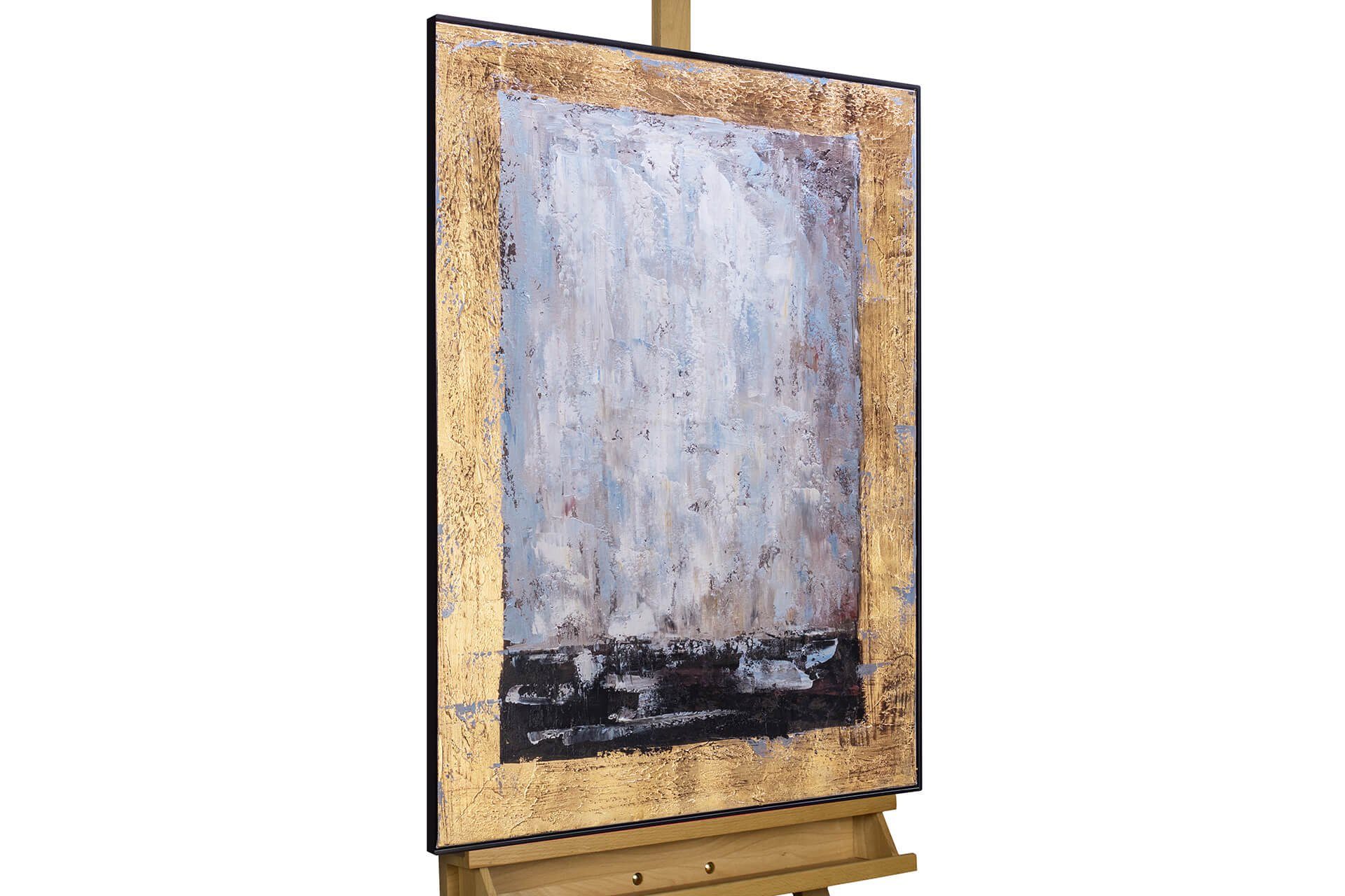Eine handgemalte 'Goldene Aura' umgibt strukturreiche Grau- und Schwarz-Flächen, deren spannender Kontrast sich in dem schwarzen Rahmen des Acrylgemäldes fortsetzt. Dieses abstrakte Kunstwerk verleiht Ihrem Wohnzimmer mit seinem Goldglanz eine edle Note. Die bewundernden Blicke Ihrer Gäste werden Ihren exklusiven Geschmack bestätigen.
