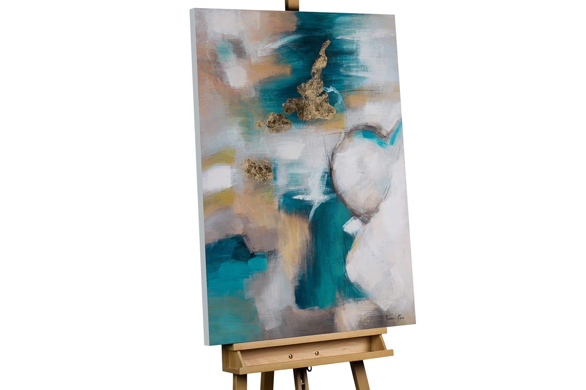 In Ihrem Raum wird das handgemalte Acrylgemälde 'Himmel der Hoffnung' mit der Verzierung Goldglanz und der leuchtenden Brillanz seiner Farben alle Blicke auf sich ziehen. Als Betrachter spüren Sie, dass der Künstler jeden Pinselstrich in Grau und Türkis mit Liebe zum Detail gesetzt hat, wodurch sich jedes Bild in Nuancen von anderen unterscheidet. Das Leinwandbild ist Ausdruck Ihrer Persönlichkeit und wertet Ihren Raum auf, da durch den abwechslungsreichen Farbauftrag eine spannende Oberflächenstruktur entsteht.