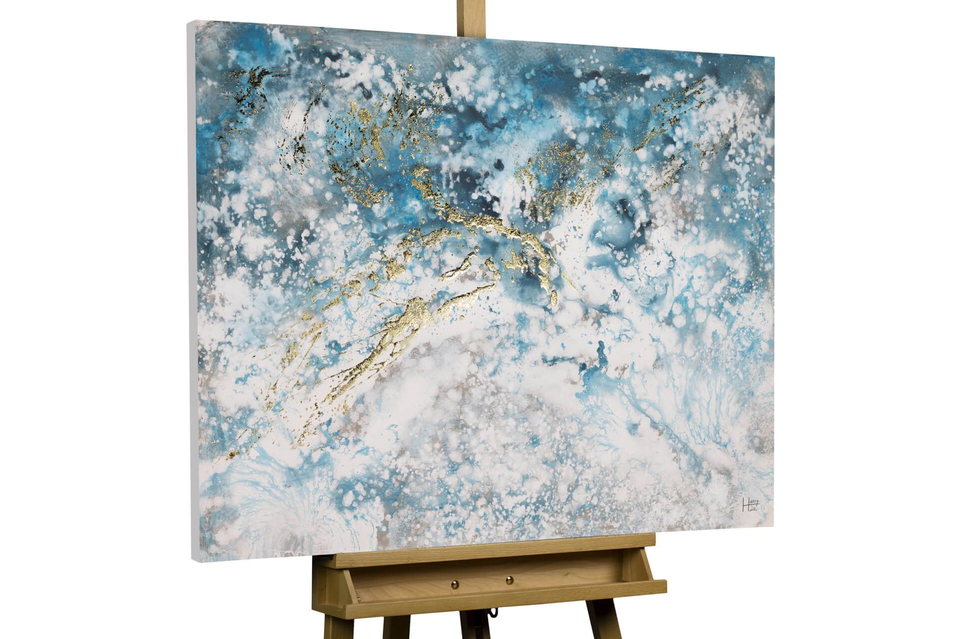 Das gut behütete Geheimnis des griechischen Meeresgottes verbirgt sich auf dem Acrylgemälde 'Poseidon's Treasure'. In blauen und weißen Strömungen formt sich das endlos weite Meer, das durch göttliche Elemente im Goldglanz erstrahlt. Mit starker Abstraktheit appelliert das handgemalte Arrangement an beeindruckende Naturphänomene in Ihrem Esszimmer.