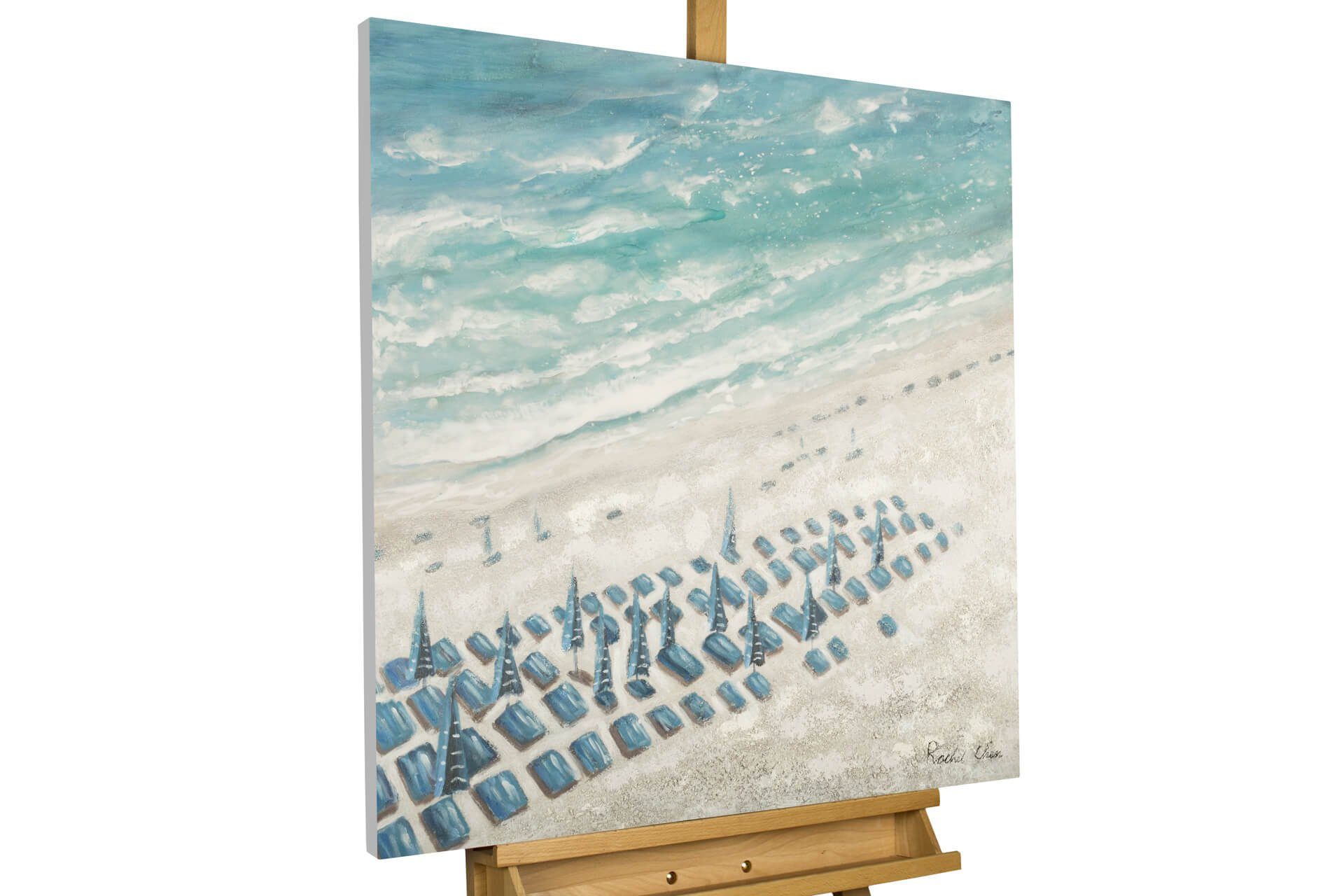 Begeben Sie sich mit dem handgemalten Acrylgemälde auf eine 'Reise ans Meer'. Spüren Sie die wärmende Sonne in Ihrem Gesicht und die rauschenden Wellen an Ihren Füßen. Strahlendes Blau und sanftes Beige vereinen sich in einer spielerischen Komposition. Die reliefartige Oberflächenstruktur rückt das imposante Kunstwerk direkt in Ihr Wohnzimmer.