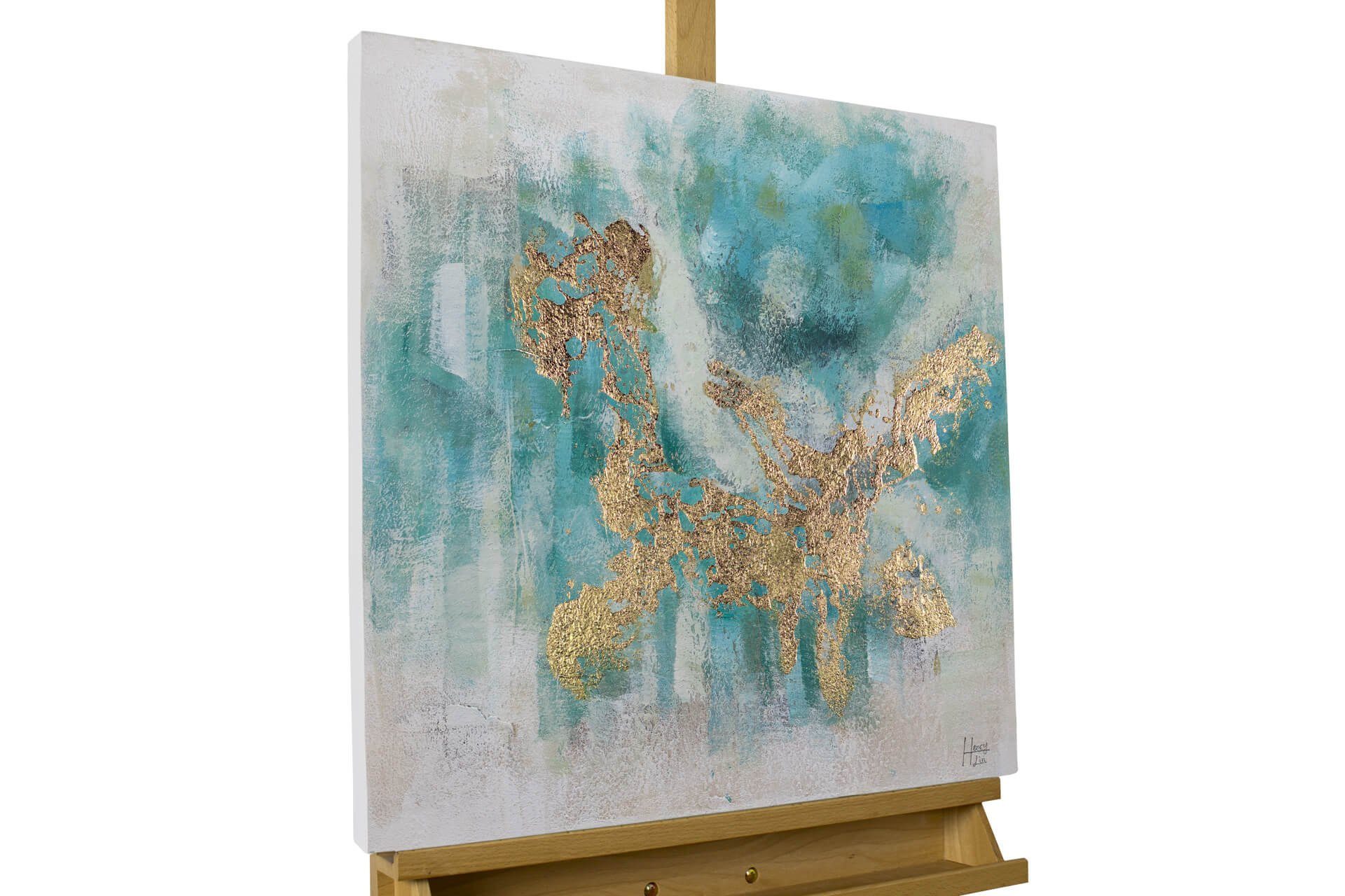 In den goldenen Tönen der Sonne und dem beruhigenden Blau des Wassers steht dieses Acrylbild für Ruhe und Harmonie. 'Schimmernder See' erinnert an einen entspannten und sorgenfreien Tag in der idyllischen Natur, verziert mit Goldglanz. Mit seiner abstrakten Komposition eignet sich das Gemälde perfekt, um Ihr Wohnzimmer in einen atemberaubenden Ruhepol zu verwandeln.