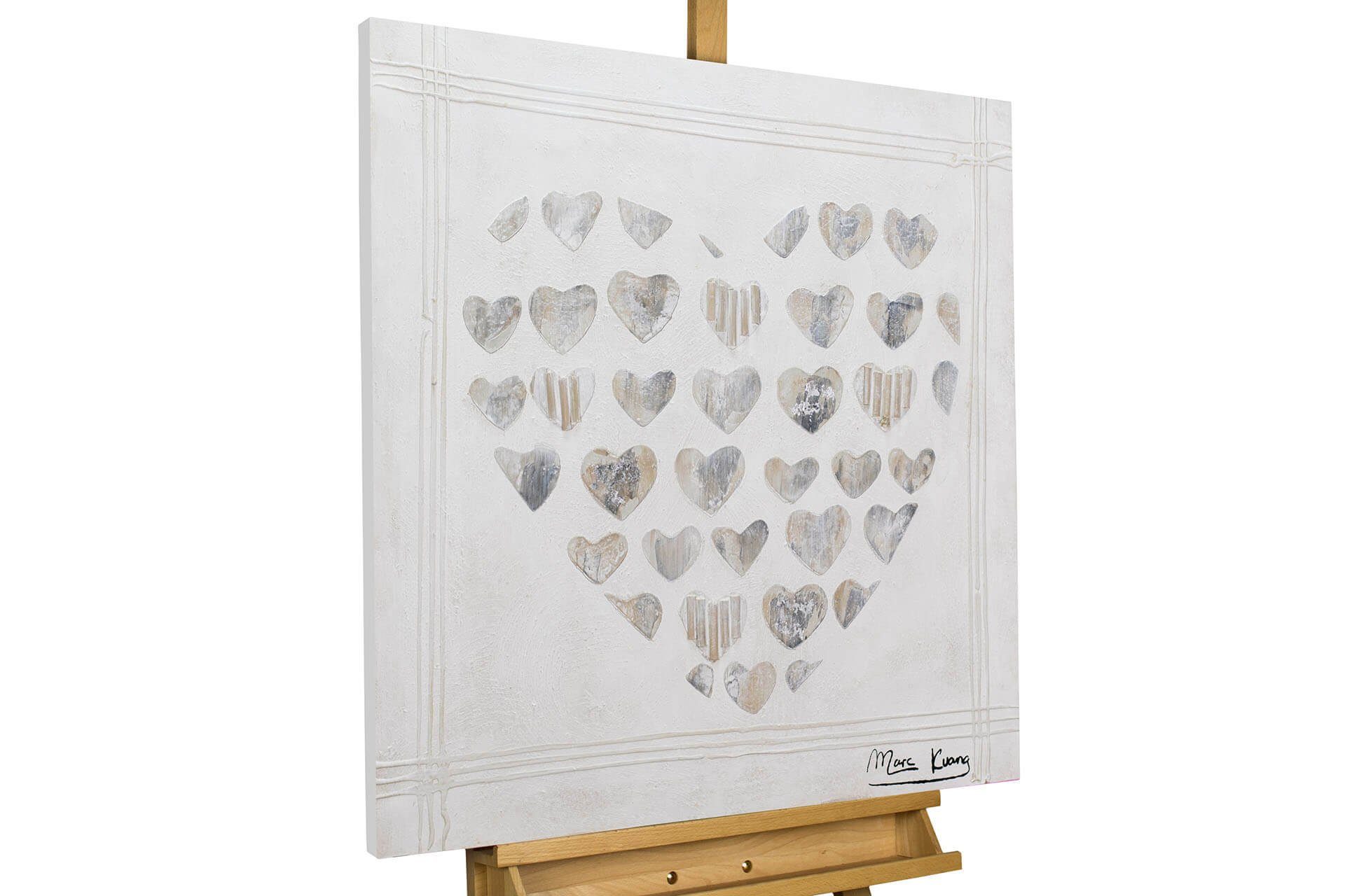 Auf dem mit Silberglanz verzierten Bild 'Tausend Herzen' vereinen sich eine Menge dieser Symbole der Zuneigung zu einem besonders Großen. Das moderne Acrylgemälde auf weißem Grund verschönert nicht nur das eigene Wohnzimmer mit einer ordentlichen Portion Liebenswürdigkeit, es eignet sich auch vorzüglich als Hochzeitsgeschenk, das von Herzen kommt.