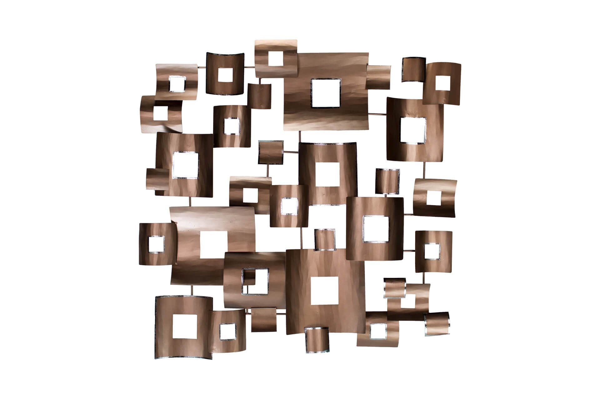 Das Ticken der Uhr wird mit 'Clockwork' sichtbar. Wie ein handgefertigtes Uhrwerk greifen die kupfernen Elemente ineinander und erschaffen eine extravagante Wandskulptur aus Metall. Im Sinne von Luxus und Eleganz ist die Wanddeko Metall mit Silberglanz ein Musterbeispiel für moderne Kunst im XXL-Format, die sich hervorragend für Ihr Büro eignet.