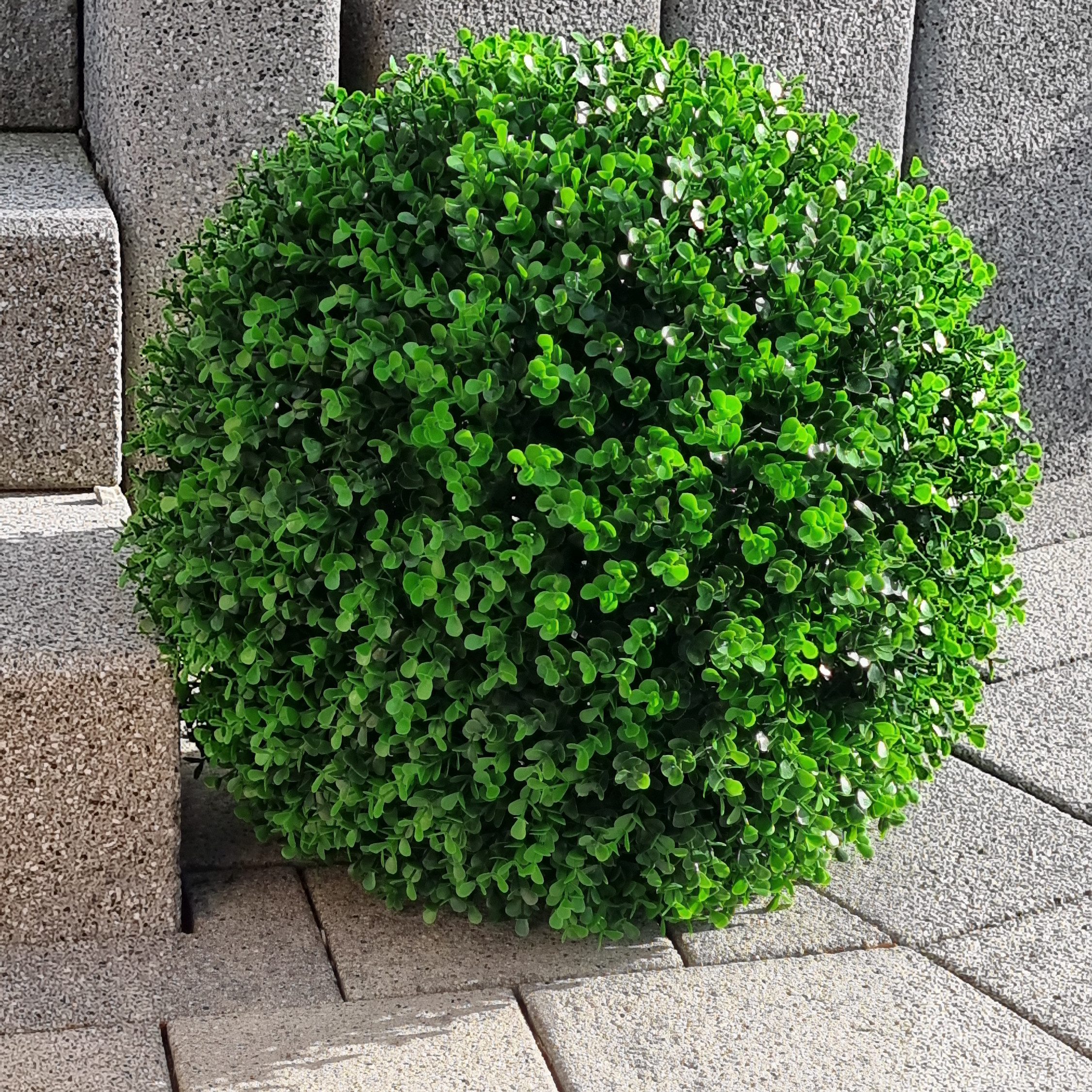Während andere Pflanzen im Herbst ihre Blätter färben und verlieren, zeigen sich diese schönen Kugeln das ganze Jahr über in einem satten Grün. Durch die leicht variierenden Farbabstufungen der Blätter erscheinen die dekorativen Kugeln täuschend echt und sehr natürlich. Die immergrünen Kunststoffkugeln finden im Innen- und Außenbereich ihren Einsatz. Ob im Eingangsbereich des Hauses, im Vorgarten oder auf der Terrasse - die Kugeln sehen an jedem Standort dekorativ und natürlich aus. Auch bei Events oder Familienfeiern sind die formschönen Kugeln als dekoratives Element ein Hingucker.