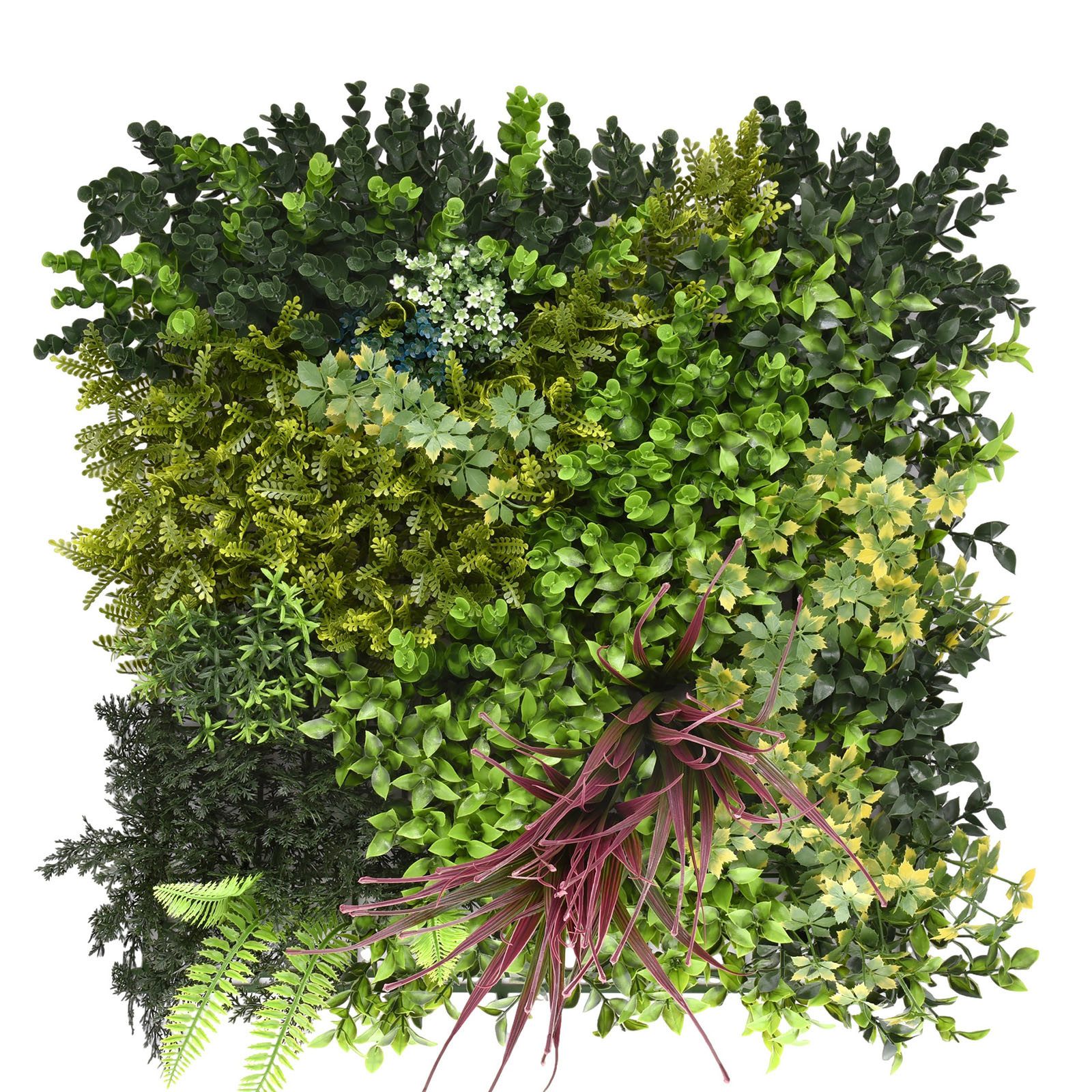 Ein großer Vorteil der Pflanzenwand ist, dass sie keine Pflege erfordert. Sie bleibt das ganze Jahr über frisch und farbenfroh, ohne dass Sie sich um Gießen oder Beschneiden kümmern müssen. Das macht sie zur perfekten Wahl für alle, die auf natürliche Eleganz und pflegeleichte Lösungen setzen.
